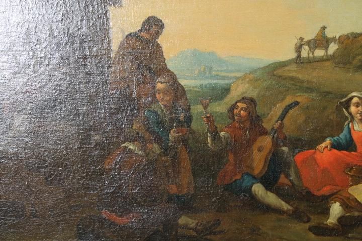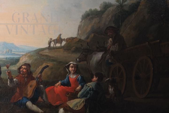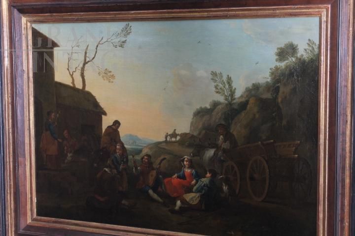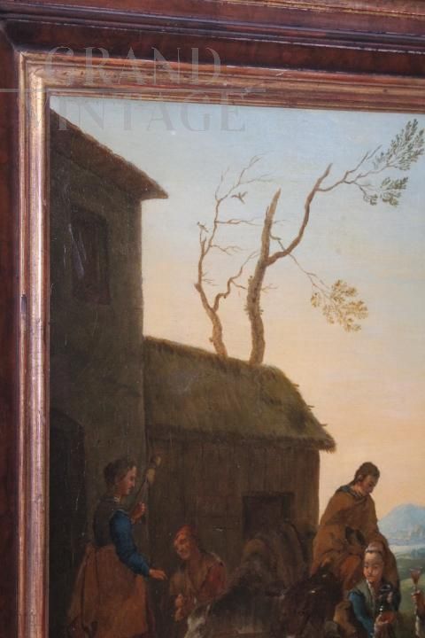 Flemish painting with a scene of country life, oil on canvas, 19th century