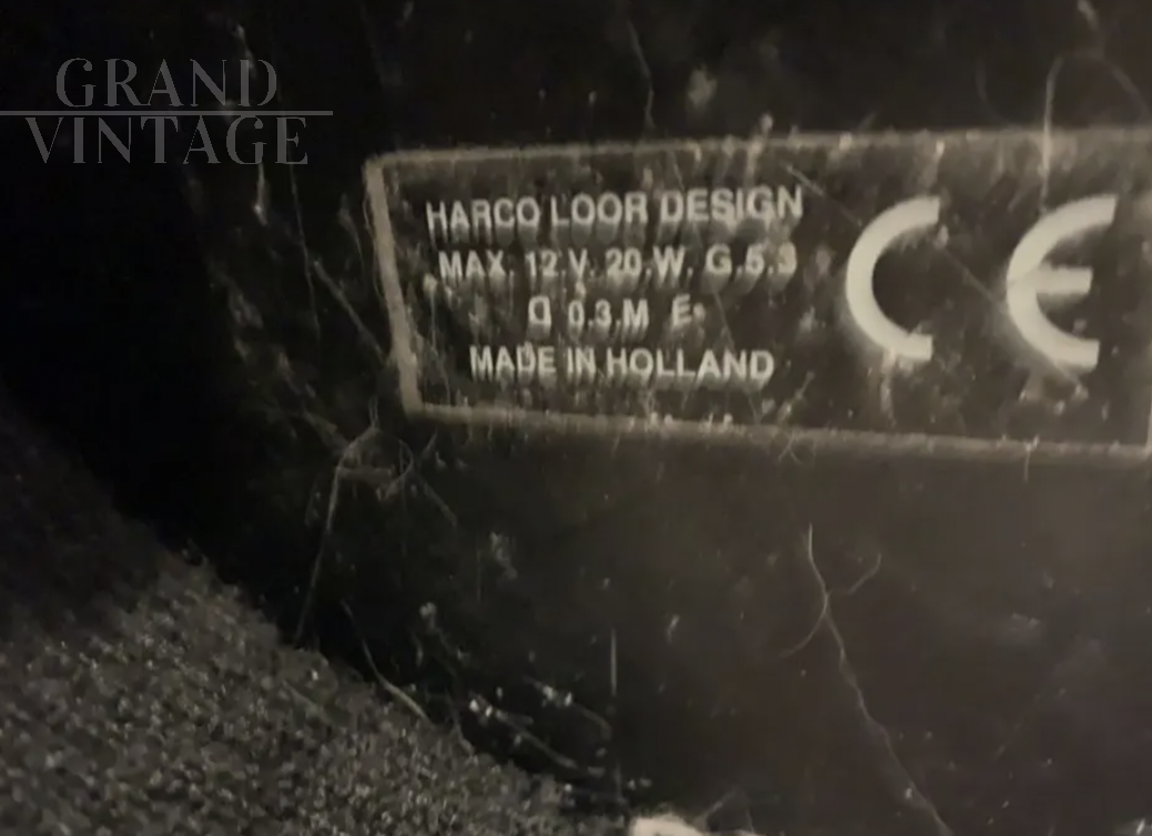 Floor lamp by Harco Loor for Harco Loor Haarlem from the 1990s. We love its simple and elegant design with its two small cones that illuminate opposite places! Furthermore, the lamp is dimmable. Good condition, some white marks on the cable. Bulb not included.