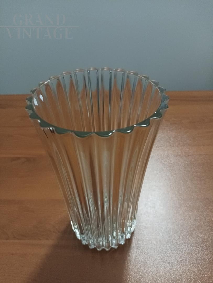 Superb fluted glass vase designed by Frantisek Visner and made by Rudolfava Hut Glassworks in Czechoslovakia. This is a great example of mid-century, 1950s Eastern European modernism.