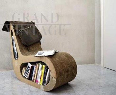 Flysit armchair by Mario Pagliaro, a cardboard seat designed according to a gluing system that gives it a particular resistance.