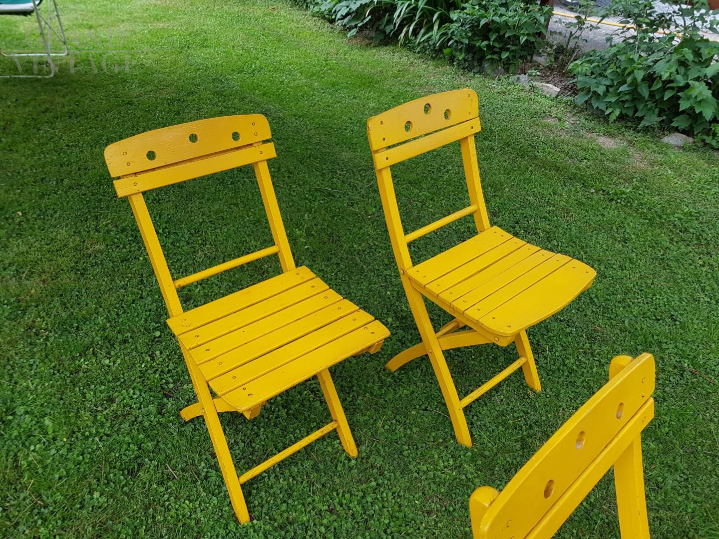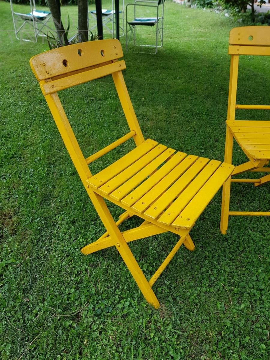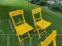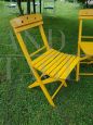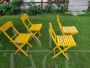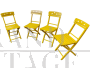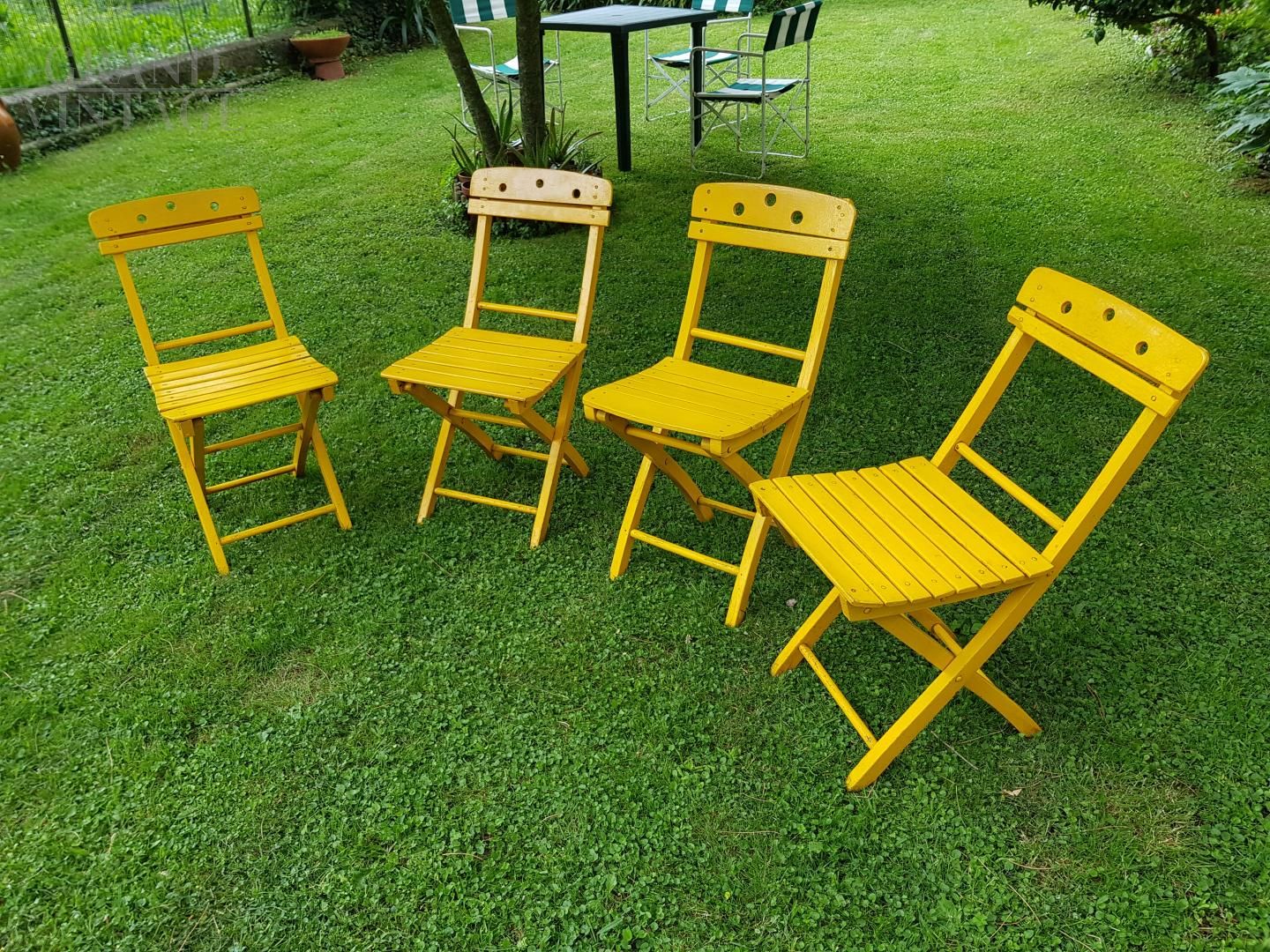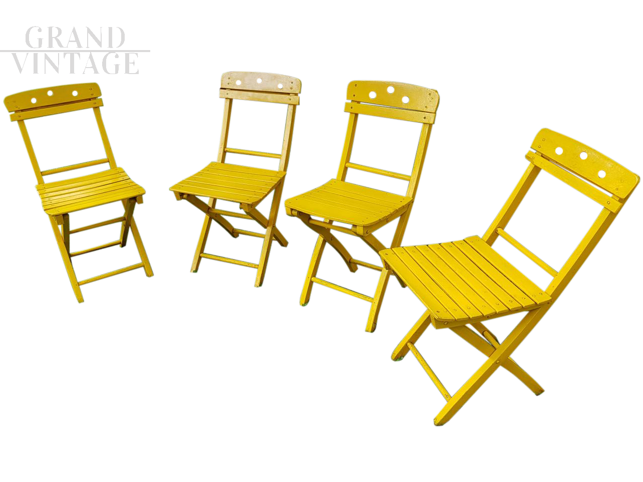 Four folding yellow wooden chairs from the 1950s from a seaside resort on the Riviera. Italian manufacture.