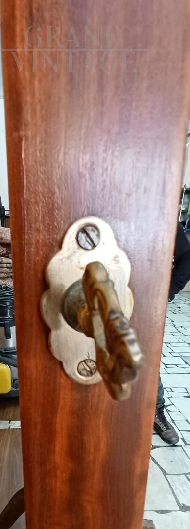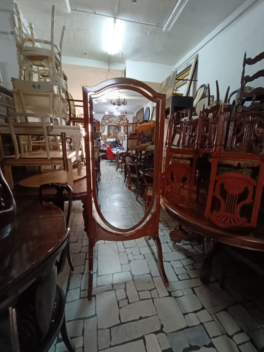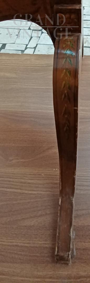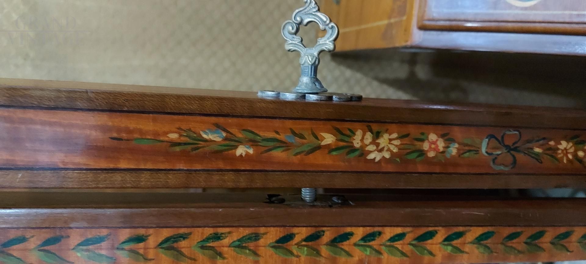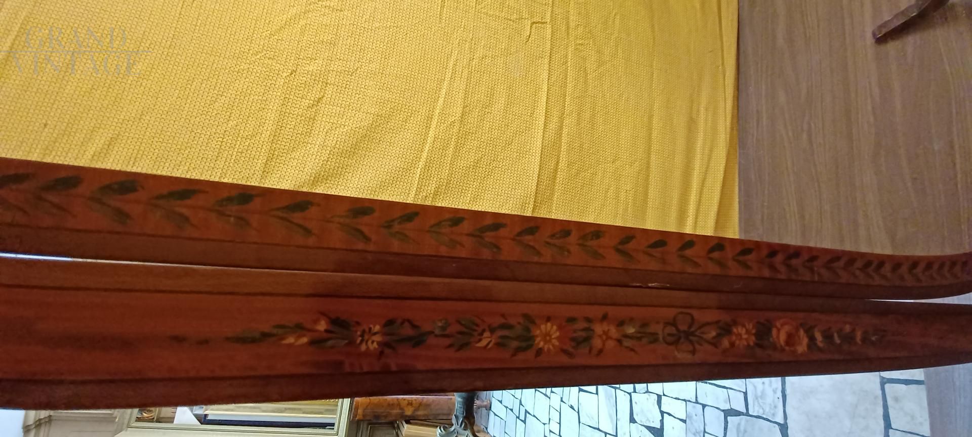 Antique Edwardian standing mirror with Maple & Co brand. English original, in finely lacquered maple wood and hand decorated with floral and geometric motifs. Back in finished maple wood. Late 19th century, from England, branded Maple & Co, a British furniture and upholstery manufacturer founded in 1841 that enjoyed particular success during the Victorian and Edwardian era. The company has become one of the leading manufacturers and suppliers of furniture for the aristocracy and the royal family.