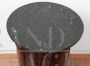 French Empire cylinder bedside table in mahogany feather with black Belgian marble top. The marble top rests on a cylindrical shaft with a door in the center that opens via a wooden knob. Internally there are two shelves, one of which is in wood and the other in marble, which divide the space into three parts. This type of furniture is often used as a bottle cabinet.