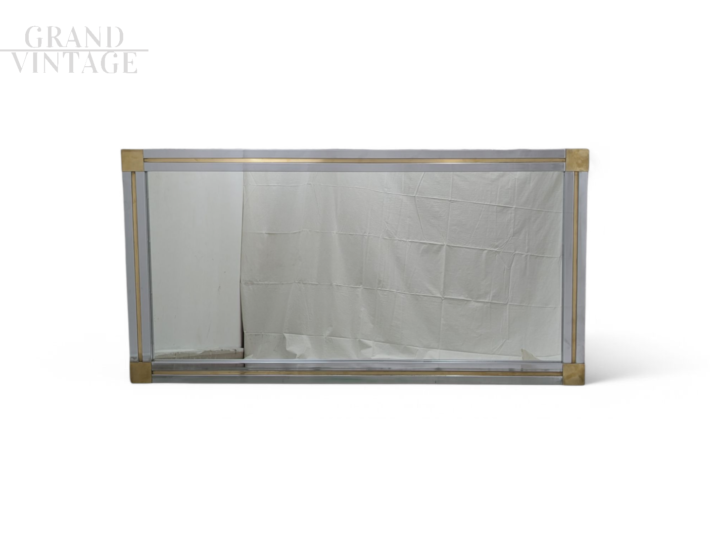 Full-length mirror in chromed steel and brass, 1970s