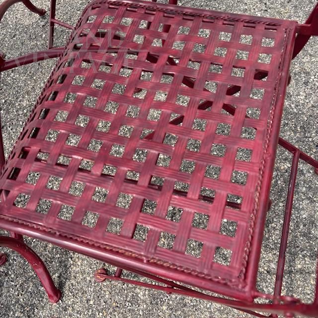 Garden set with table and 4 chairs in red lacquered wrought iron, 1970s