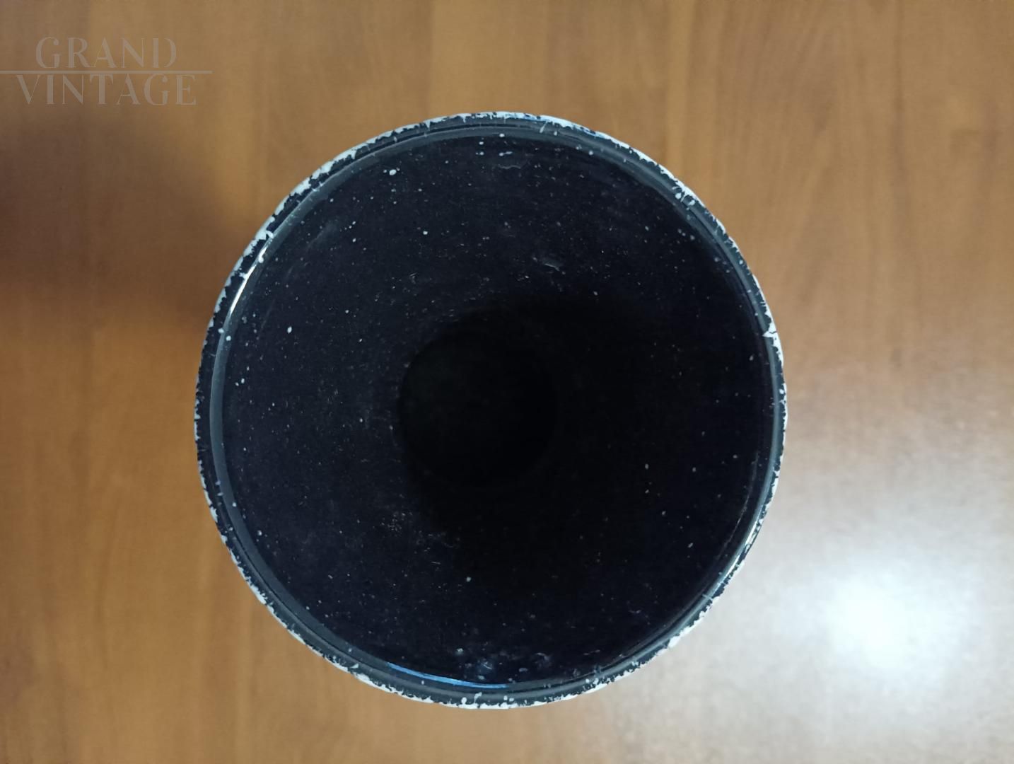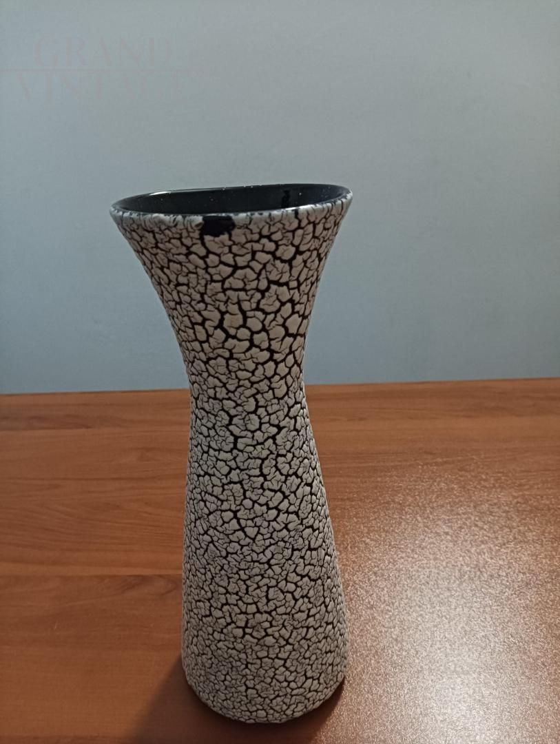 Beautiful German vase by Jasba Keramik, Cortina model, produced in the mid-century in black and white crepe-glazed ceramic with a craquelé effect. The inside of the vase is completely enamelled in black. The markings on the base read "W. Germania" and a model number 302/27. The small black spot seen in the photo is a manufacturing defect.