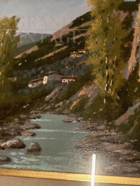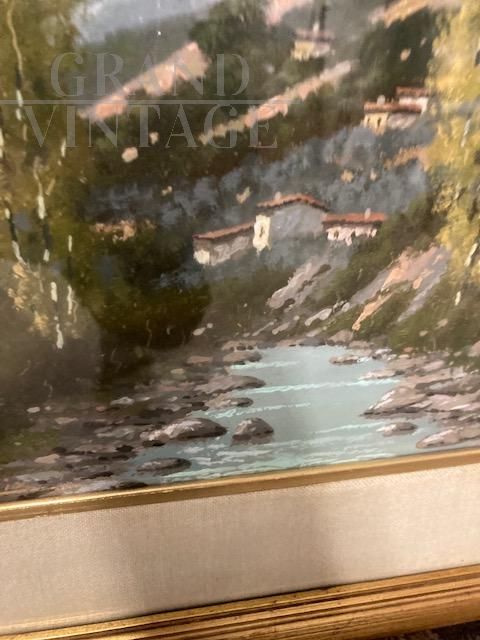 Giacomo Delcroix - Painting with a river landscape, Florence 1950s