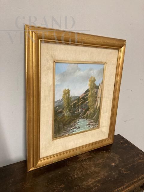 Oil painting on hardboard with a river landscape signed Giacomo Delcroix (Florence 1894 - 1972), of fine workmanship. Excellent conditions.