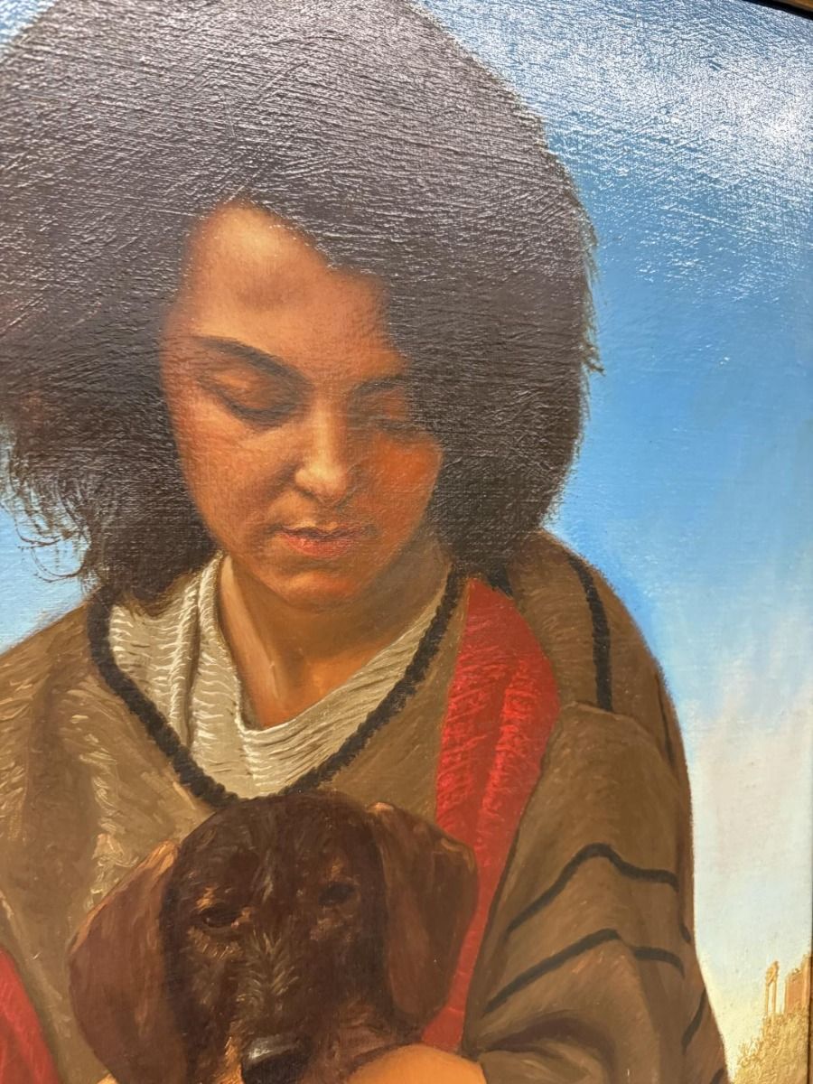 Giancarlo Pignataro, painting of a girl with a dog, oil on canvas, 1987