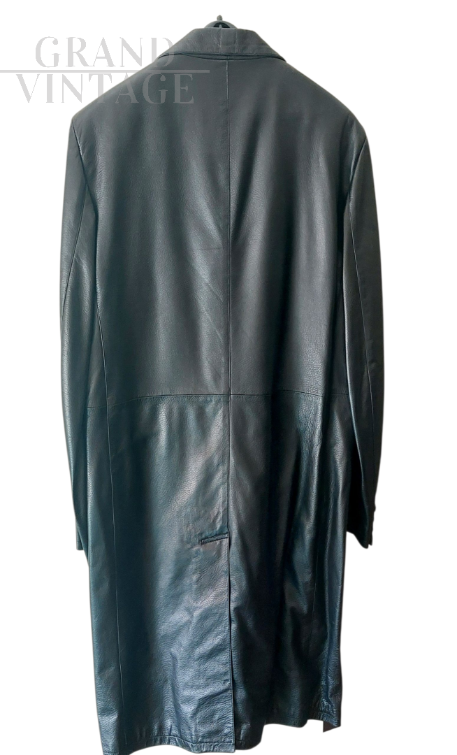Stunning Gianni Versace men's long coat in 100% pure sheepskin in black. 100% viscose lining, classic collar, front closure with Versace branded buttons, two front pockets and one inside pocket, Versace hand-crafted fit with a straight fit. Size 50/52 IT, chest 115 cm, shoulders 50 cm, coat length 105 cm, sleeve length 65 cm. Purchased in Rome in 2021 for €2,400. Never used, practically new.