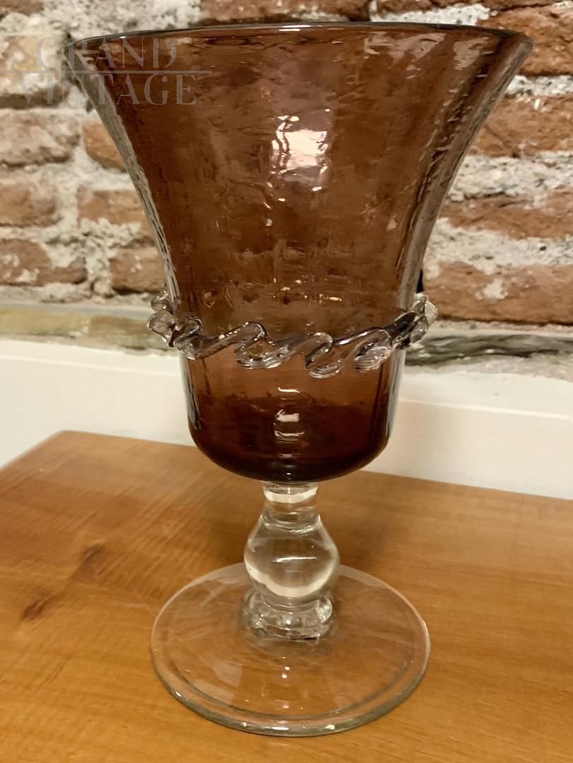 Large amethyst-coloured blown Murano glass chalice vase, Italy 1950s - 1960s, in excellent condition.