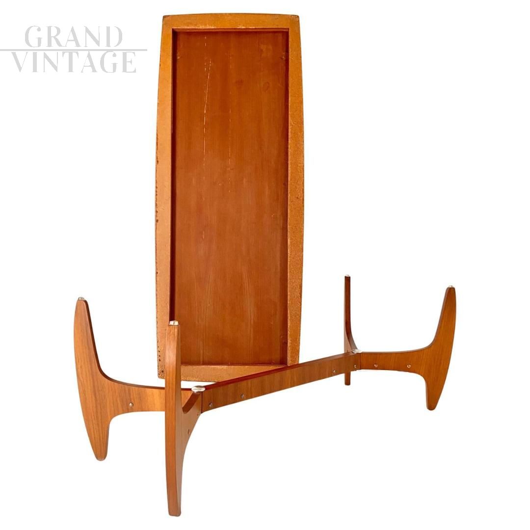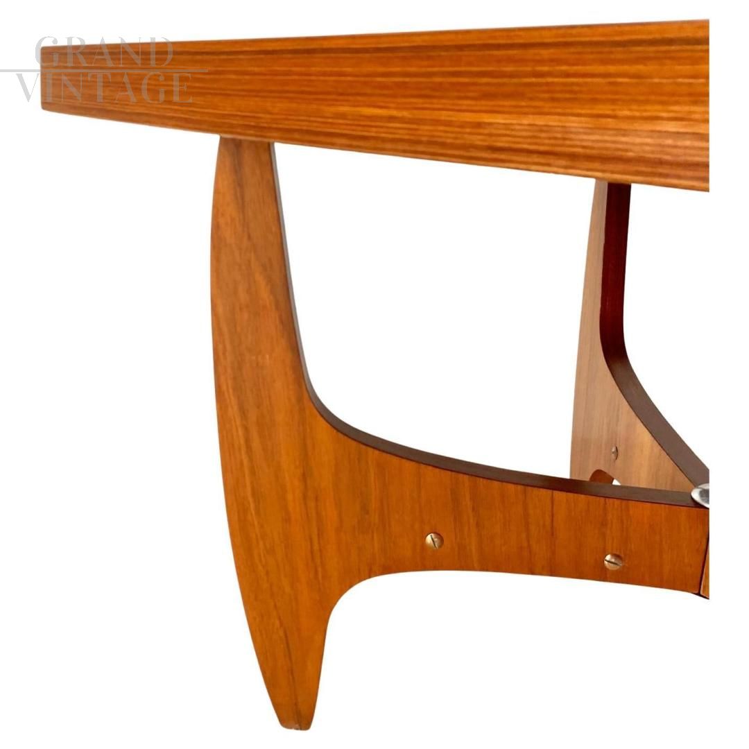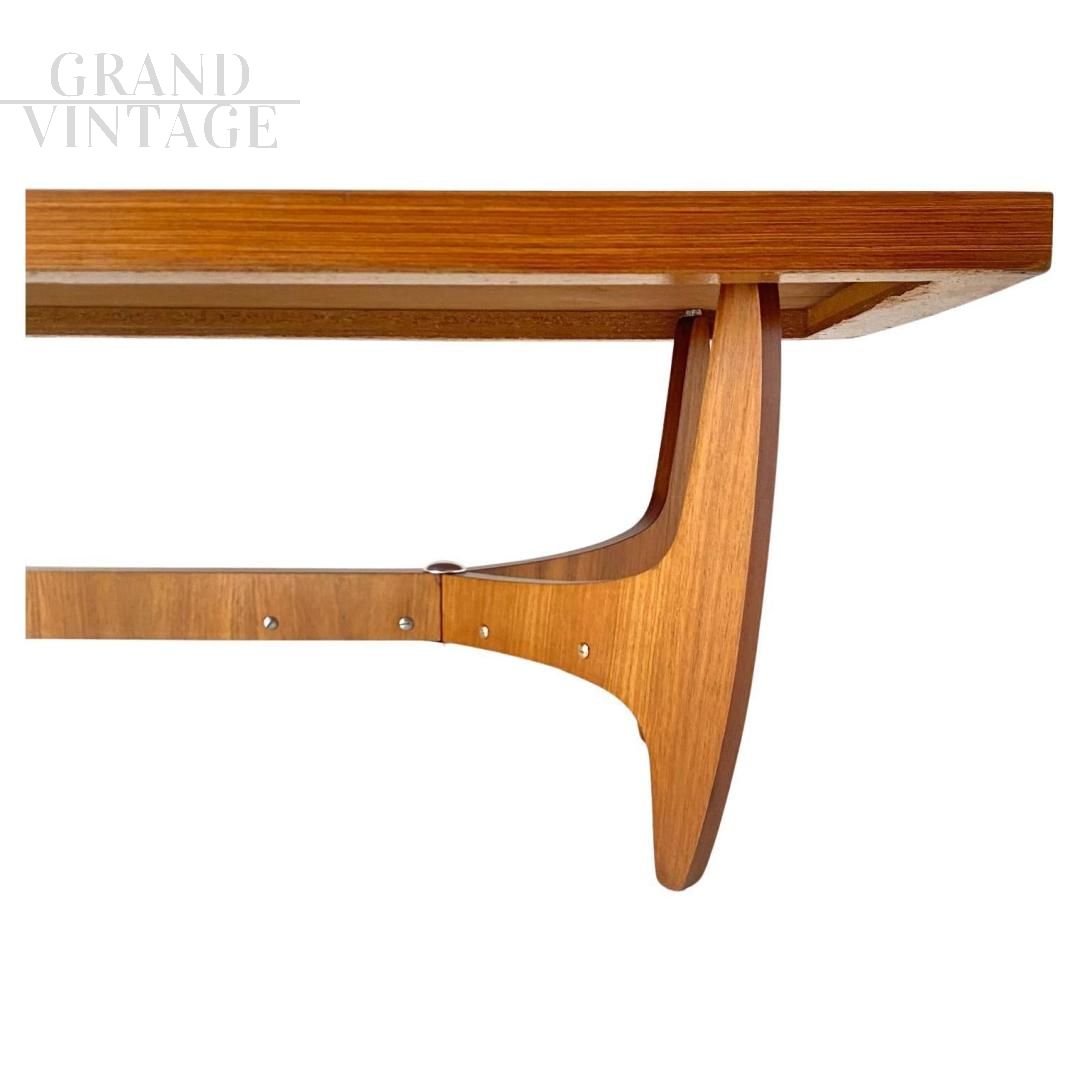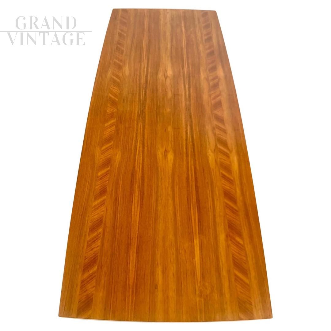 Large walnut coffee table from the 1960s. Large rectangular coffee table with very soft lines and elegantly shaped structure and legs, produced in Italy in the mid-1960s. The item is made of wood and finished with premium quality walnut veneer with rare unique herringbone pattern. The structure is enriched with chromed iron buttons to cover the screws. Removable upper shelf. Completely restored by our team. The surface has been finished and polished. In excellent condition with only a few signs of aging.