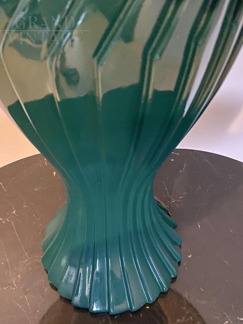 Green glazed ceramic vintage table lamp, Italy 1970s