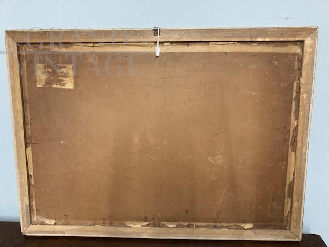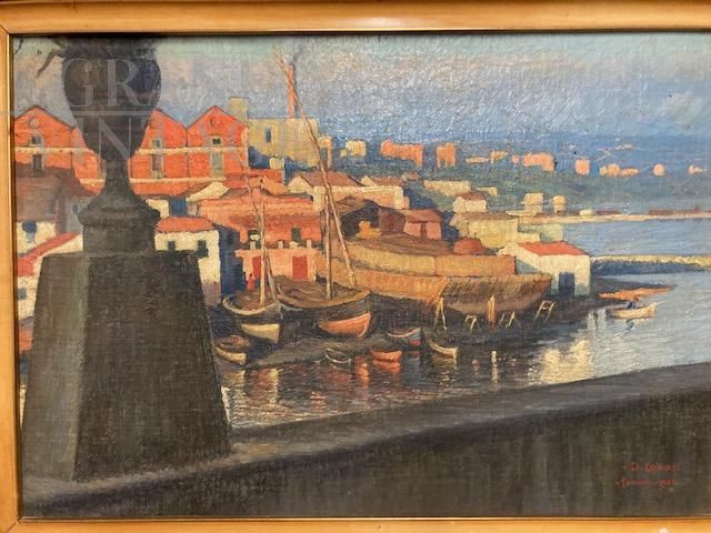 Beautiful antique painting with the Gulf of Taranto, oil on hardboard, signed by the Argentine artist Dante Canasi, Italy 1925. The painting is large in size and is characterized by vivid colours. The state of conservation is very good.