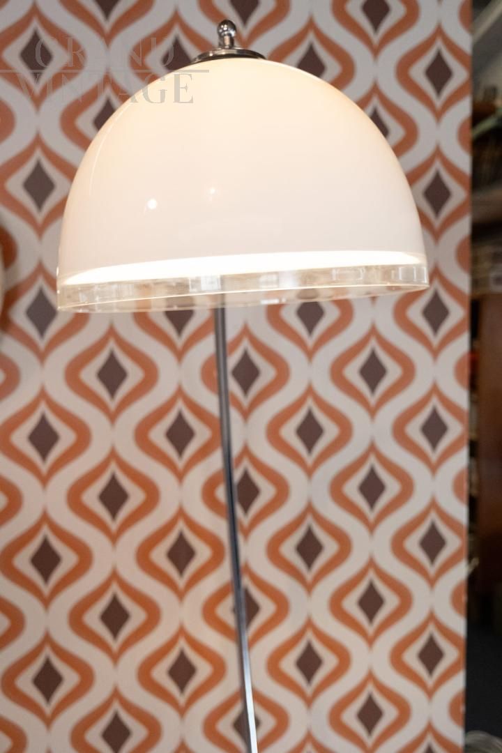 Iconic arc lamp by Guzzini, original from the 70s, a symbol of avant-garde Italian design. With its curved structure and luminous dome, it is perfect for sophisticated sets, vintage settings or productions with a retro-contemporary aesthetic. A scenographic piece that combines elegance and functionality.