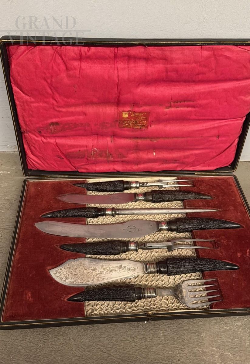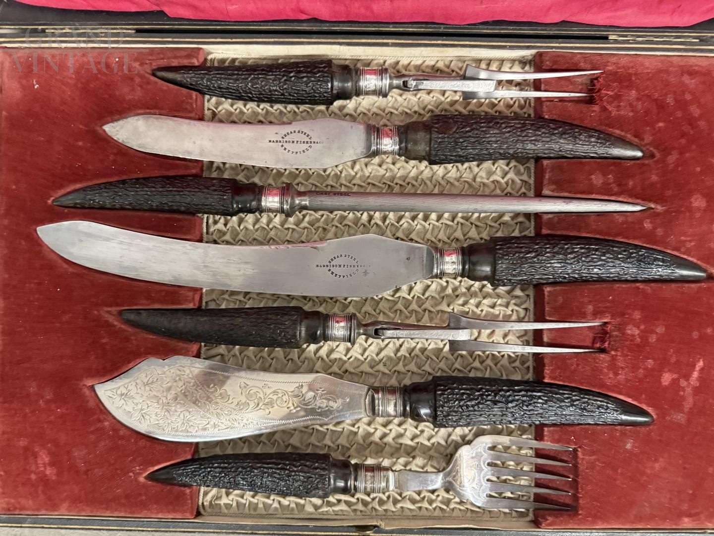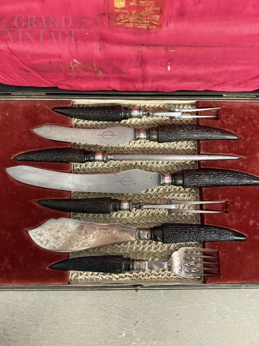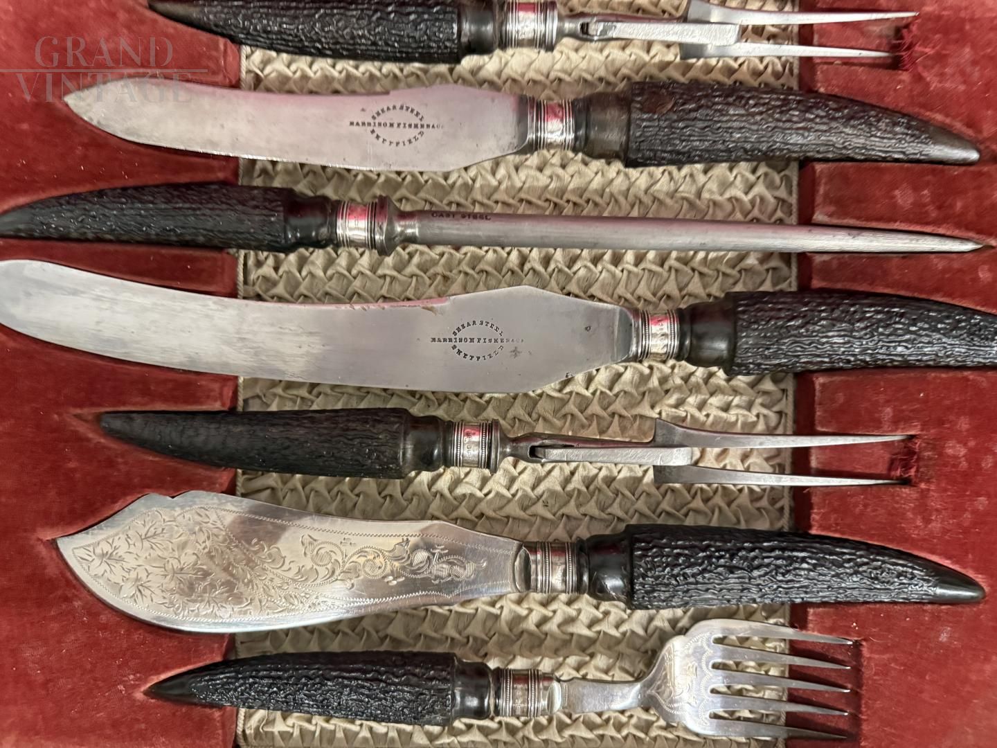 Harrison Fisher carving knife set in Sheffield silver and horn, 1890