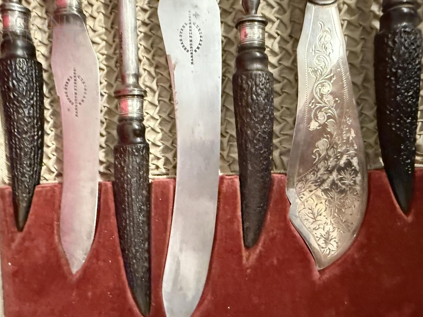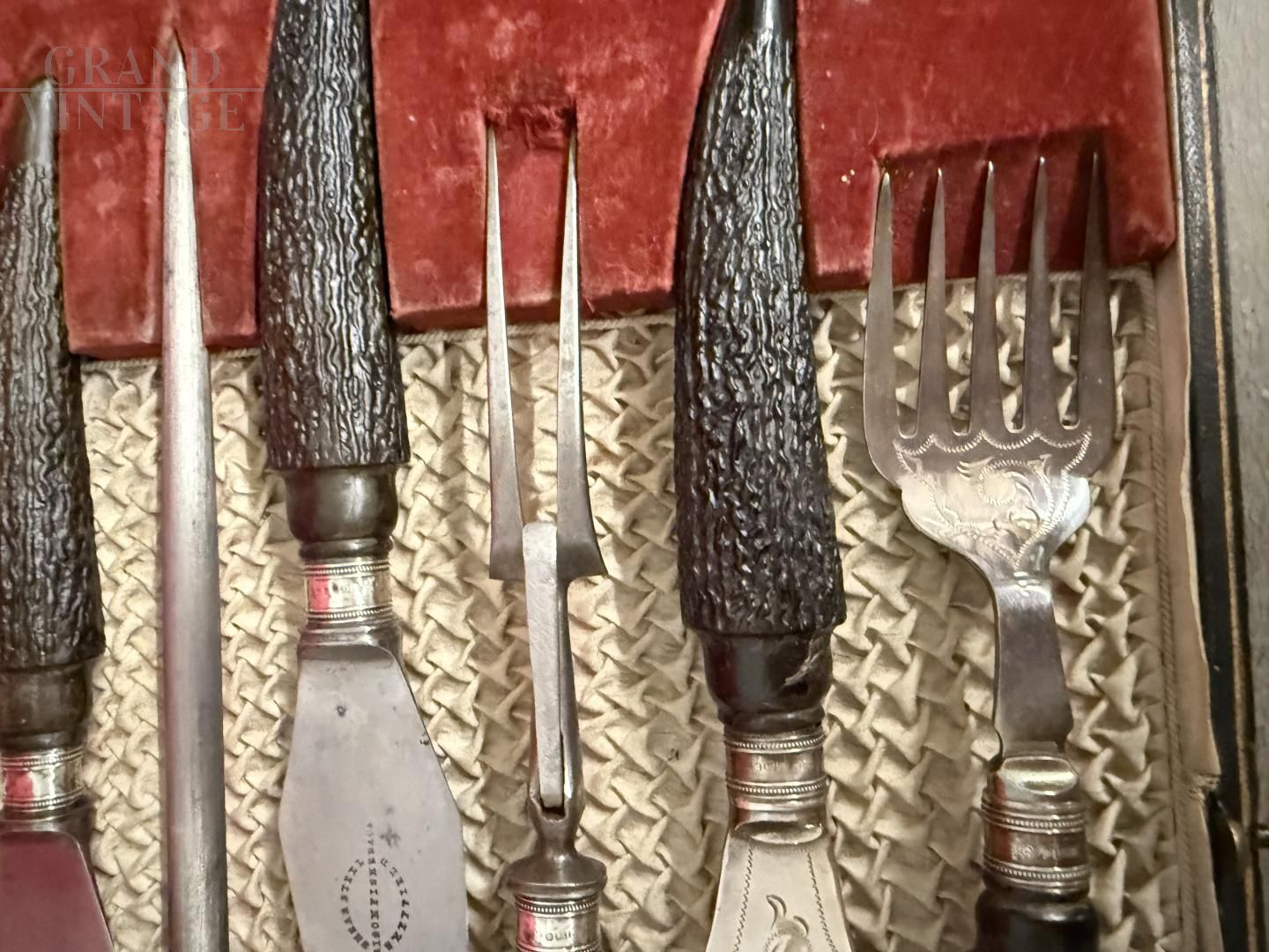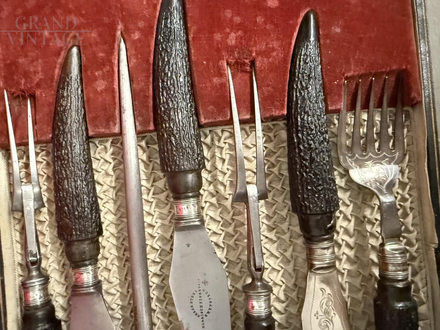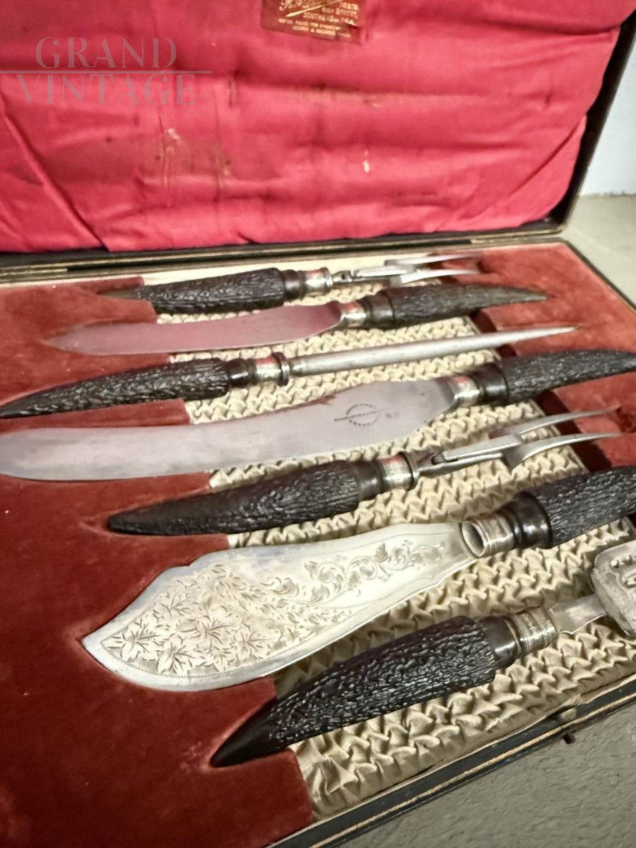 Harrison Fisher carving knife set in Sheffield silver and horn, 1890