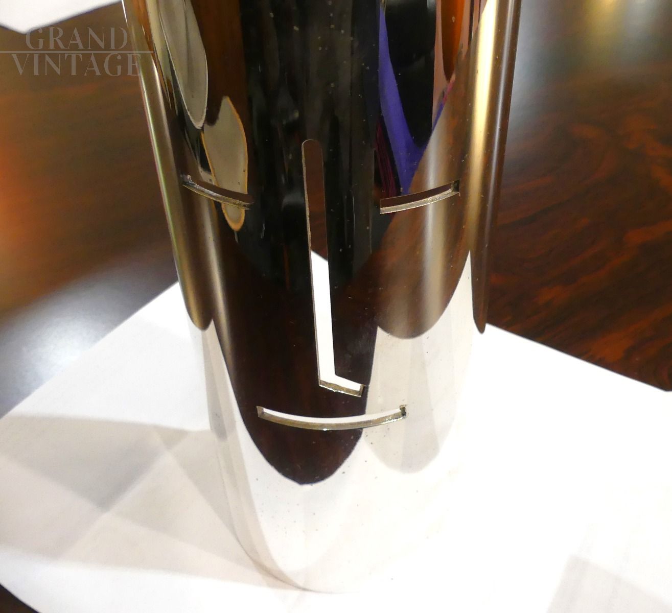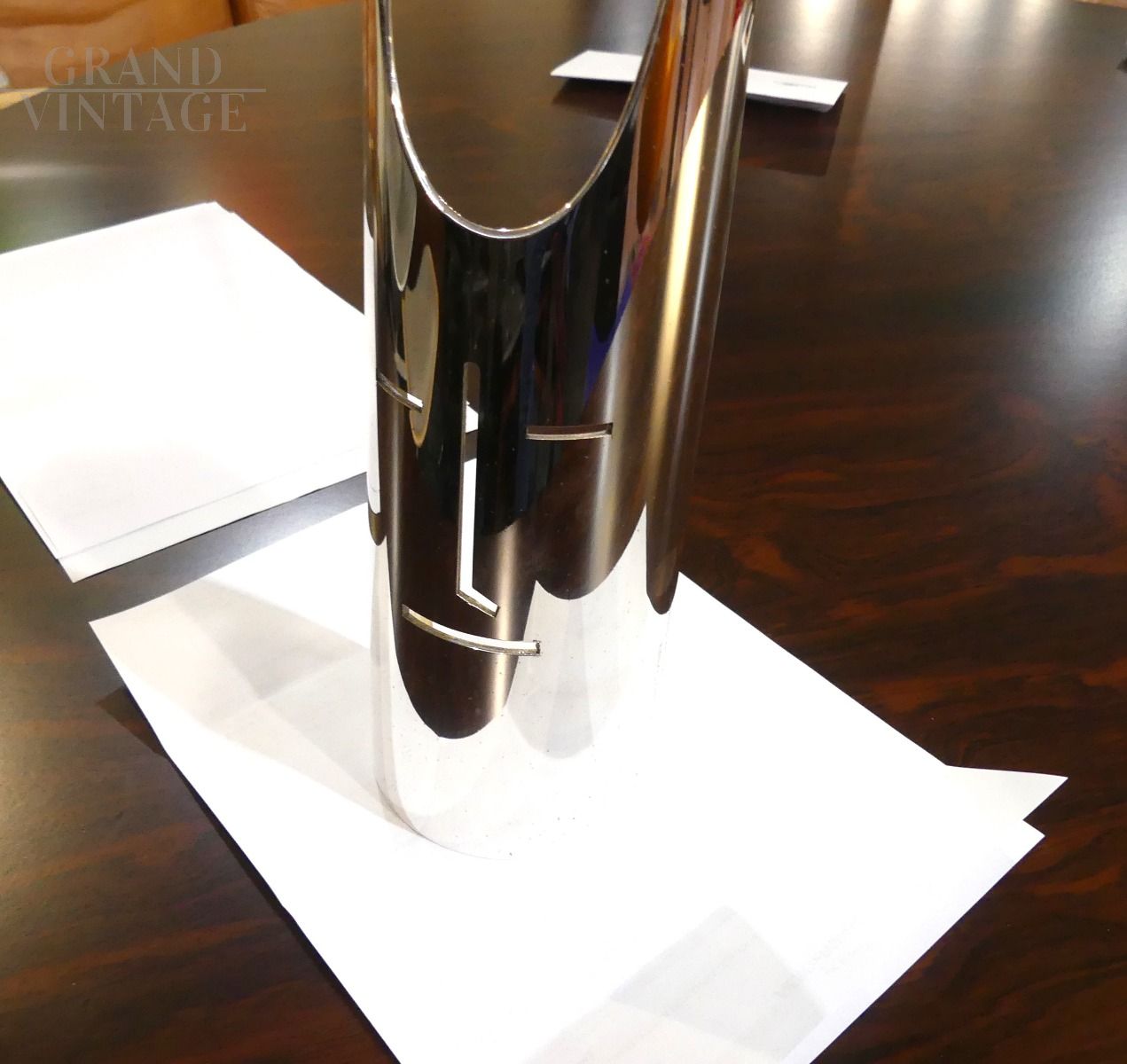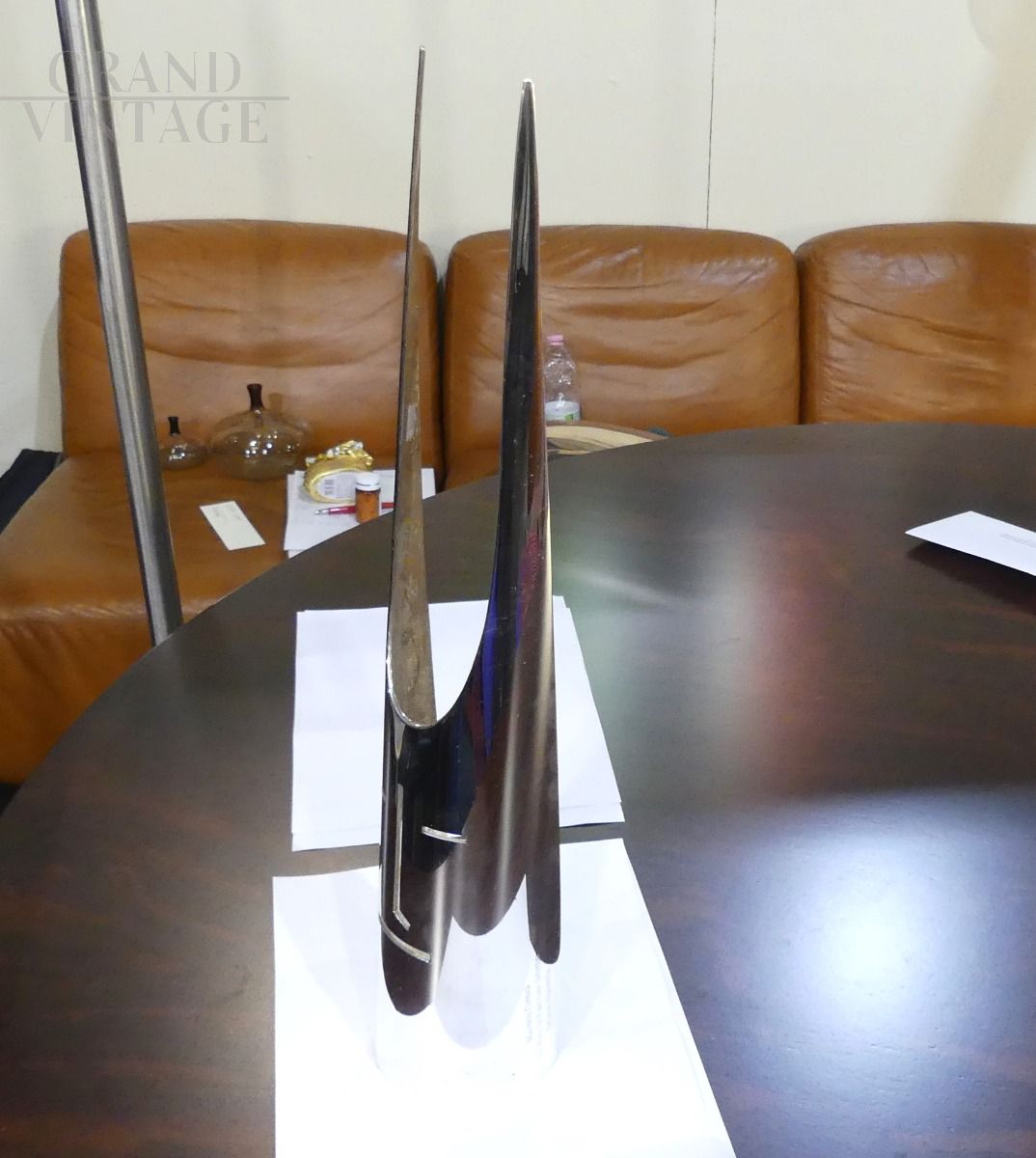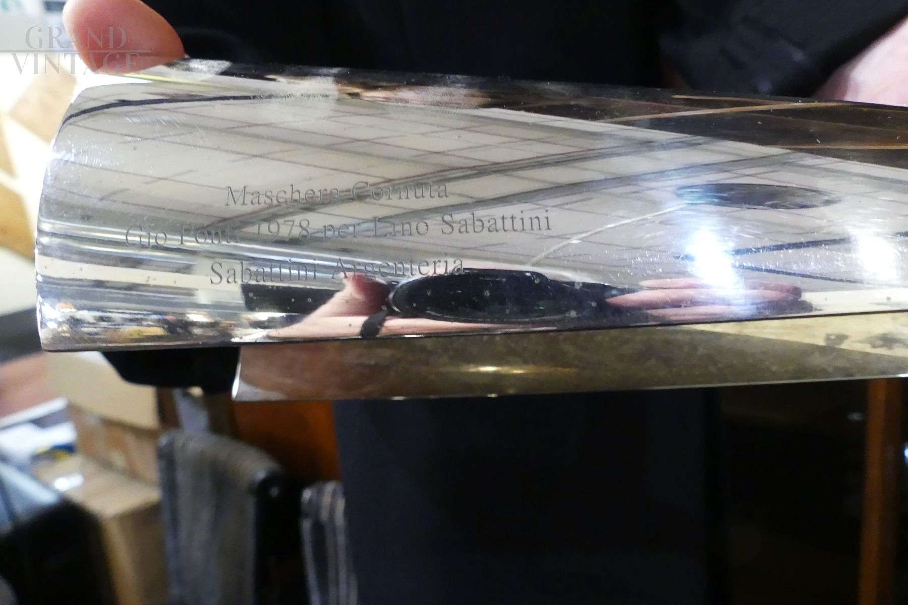 Beautiful sculpture by Gio Ponti in silvered metal foil depicting a horned mask, with mark Gio Ponti 1978 for Lino Sabattini argenti.