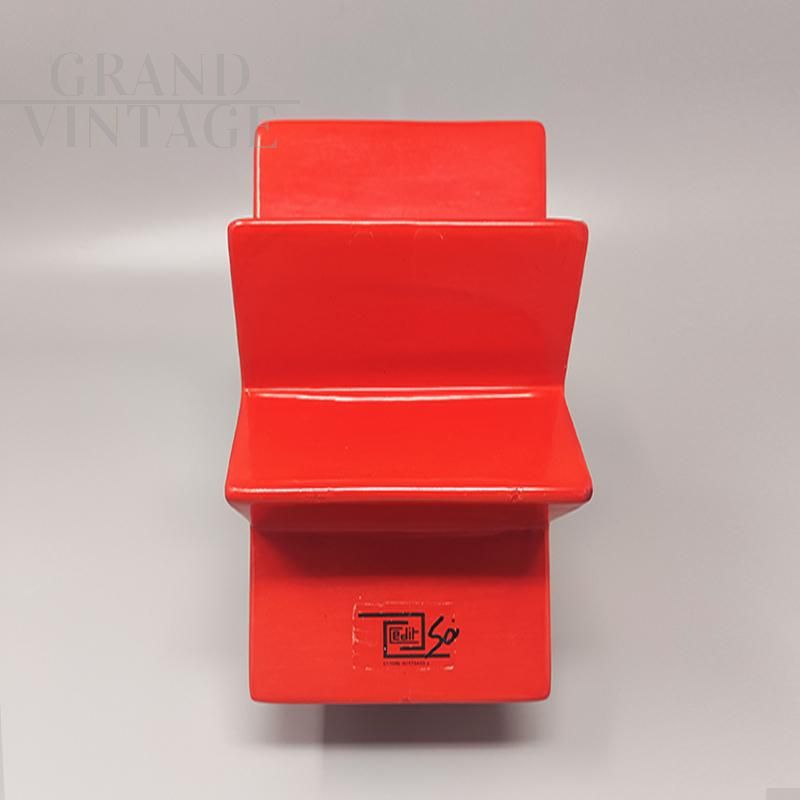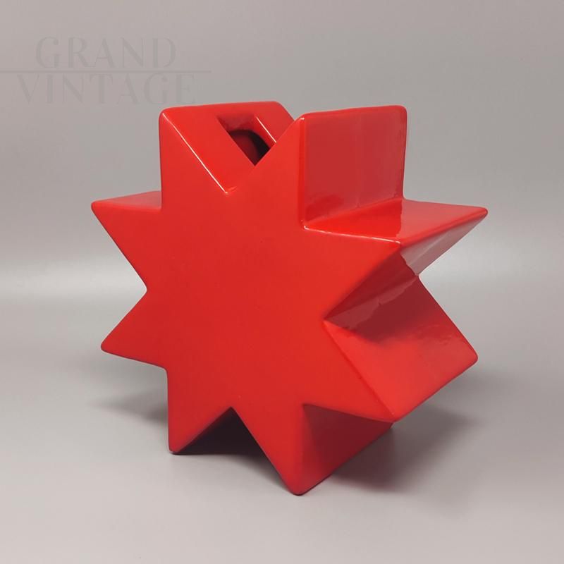 Splendid Hsing vase in red glazed ceramic by Ettore Sottsass for Alessio Sarri, Sesto Fiorentino, made in Italy 1980s. This vase is in excellent condition, and is signed at the bottom, as per the photo.