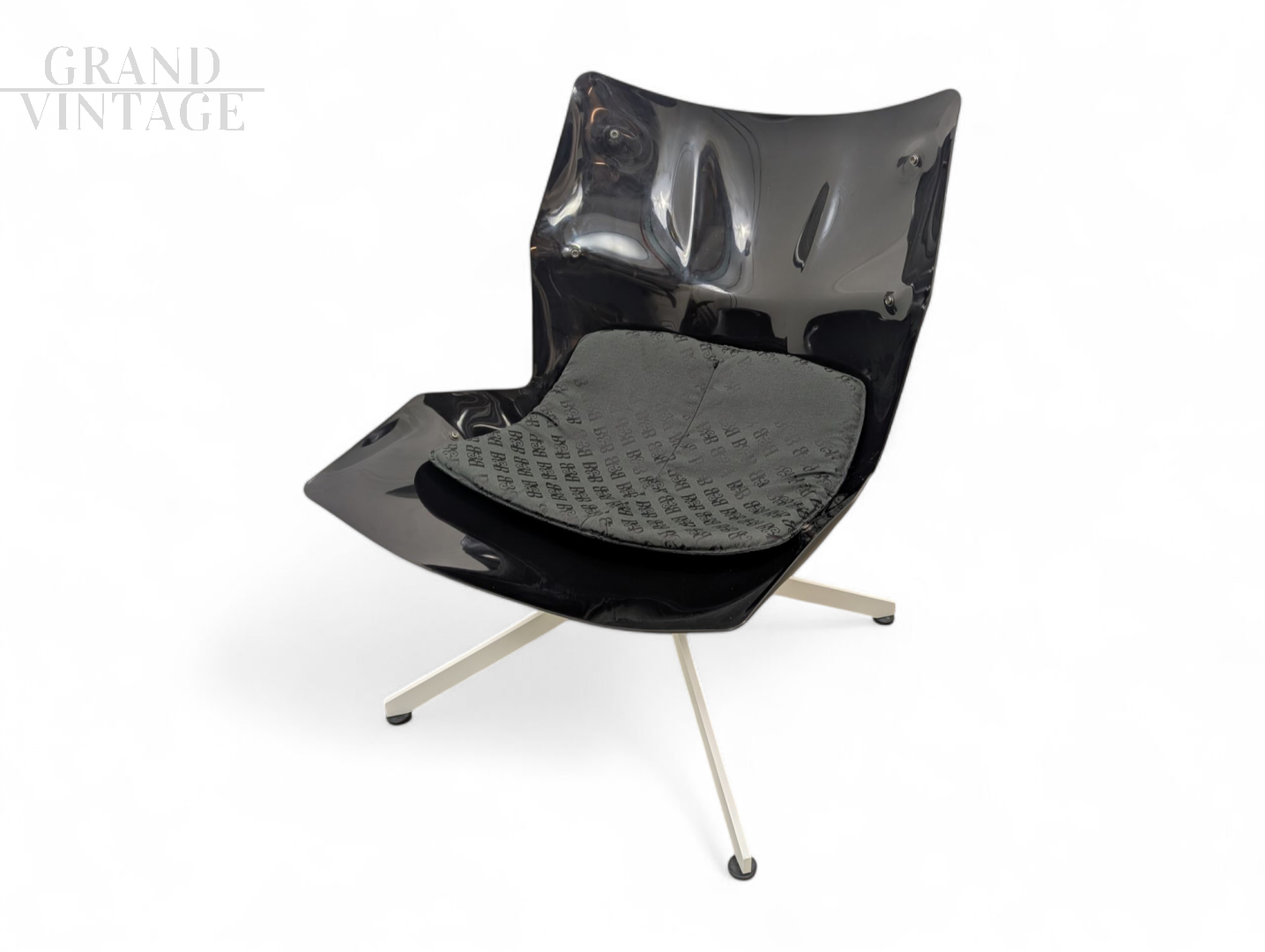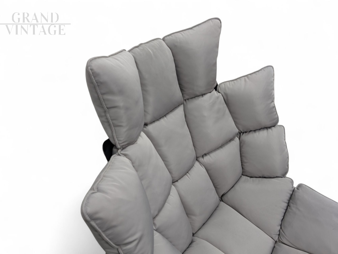 Comfort and eco-sustainability are the key words to describe the Husk high armchair. A collection that is a tribute to softness and an invitation to relax thanks to the generous extra-soft cushions with capitonné design. The rigid shell is made of Hirek®, a special plastic material made of recycled and recyclable polymers. The seat cushion extends to become a headrest. Excellent general conditions.