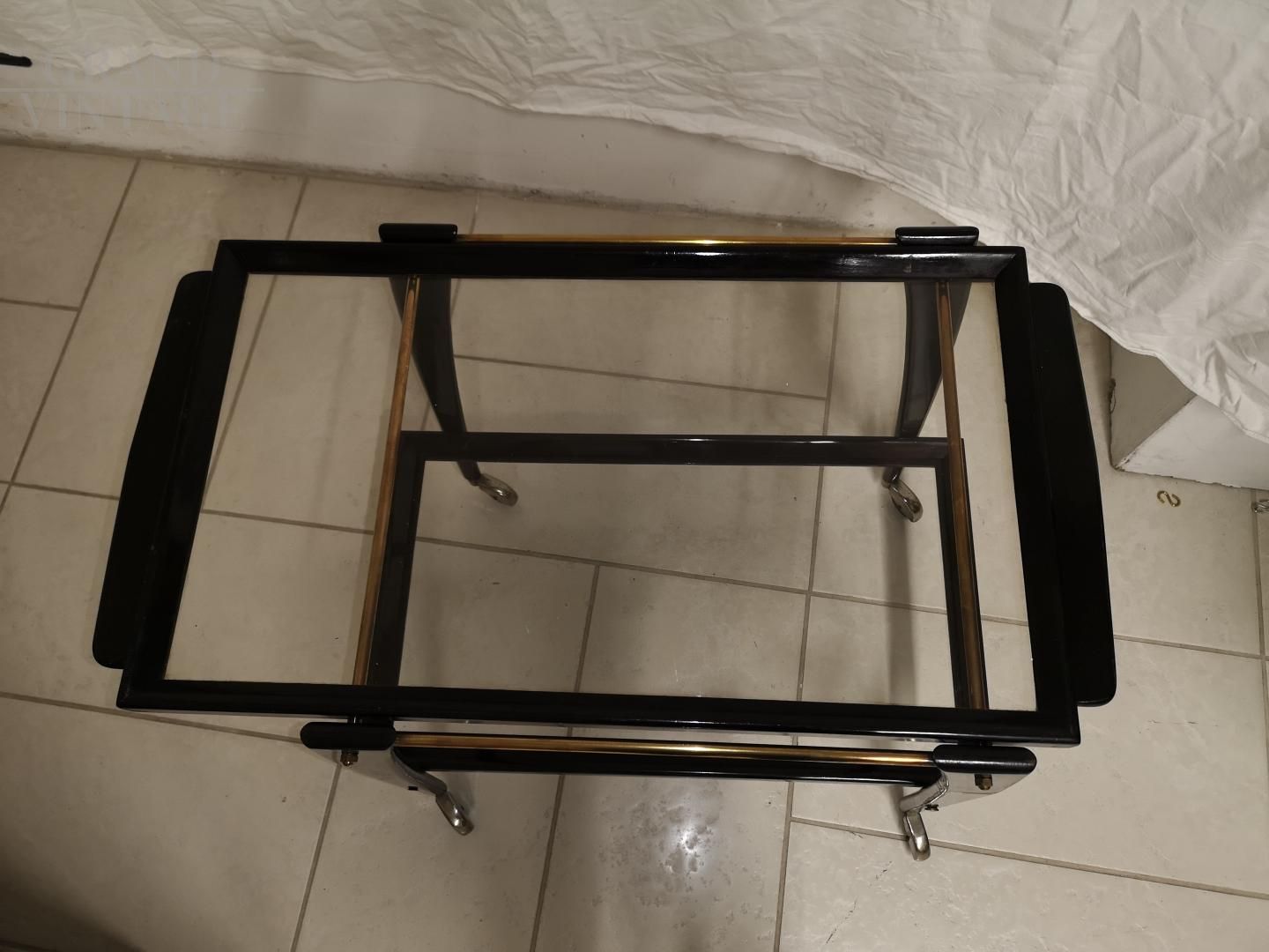 Food trolley in black lacquered wood, glass and brass, 1950s, design by Ico Parisi.