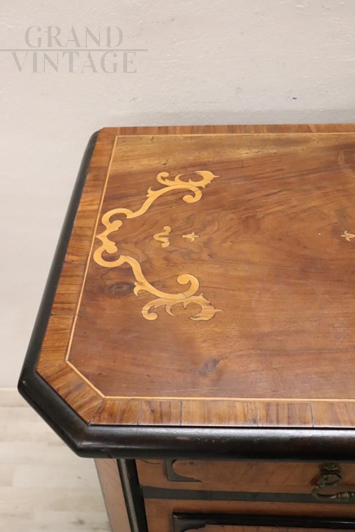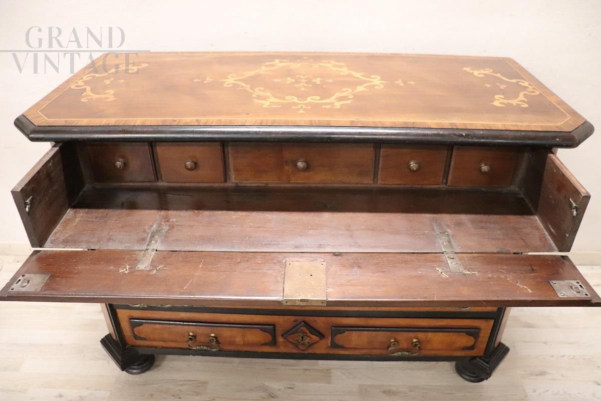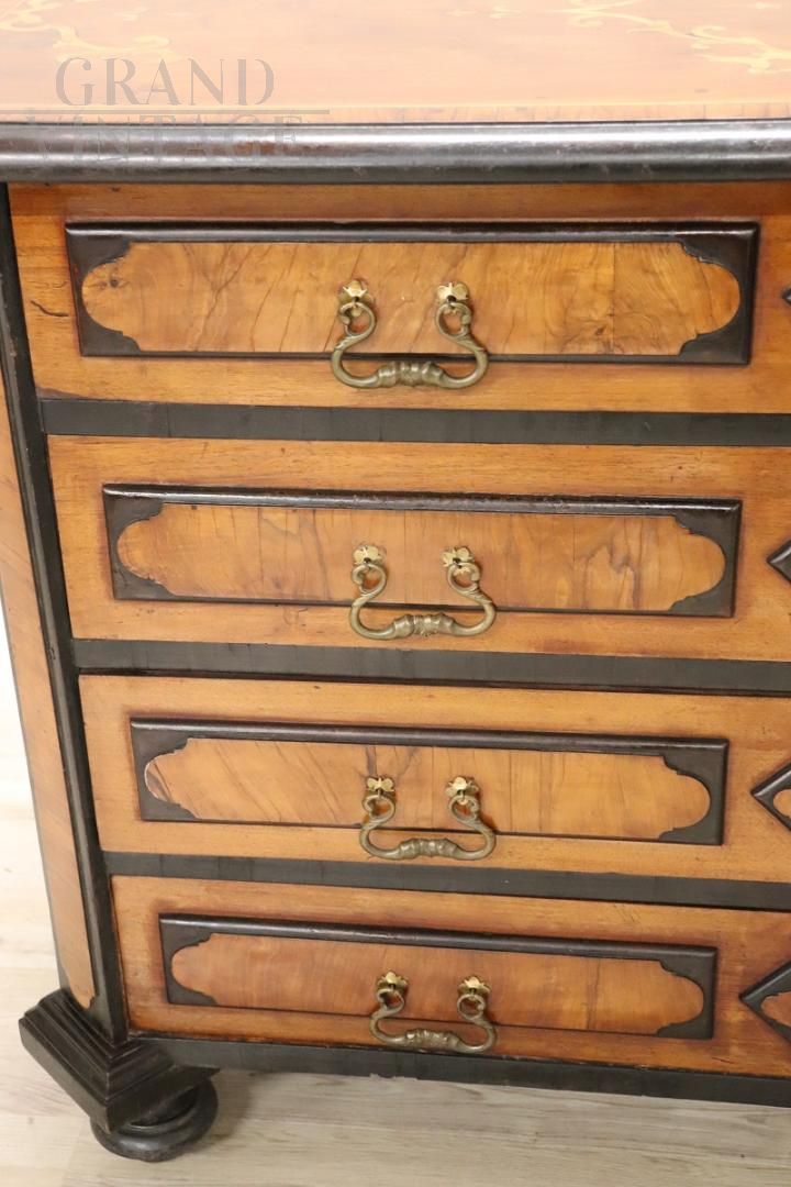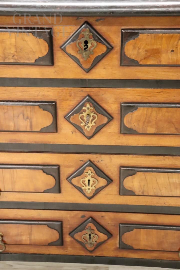 Important baroque chest of drawers in inlaid walnut, Italy 17th century
