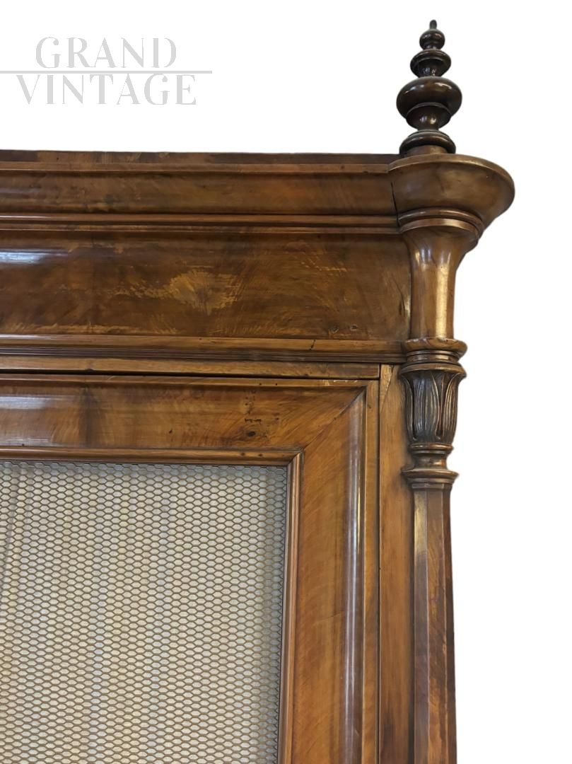 Large Lombard bookcase from the first half of the 19th century in neoclassical style with the typical feet carved in the style, entirely made of walnut, including the backs and interiors. Very refined piece of furniture, never restored but in perfect condition.