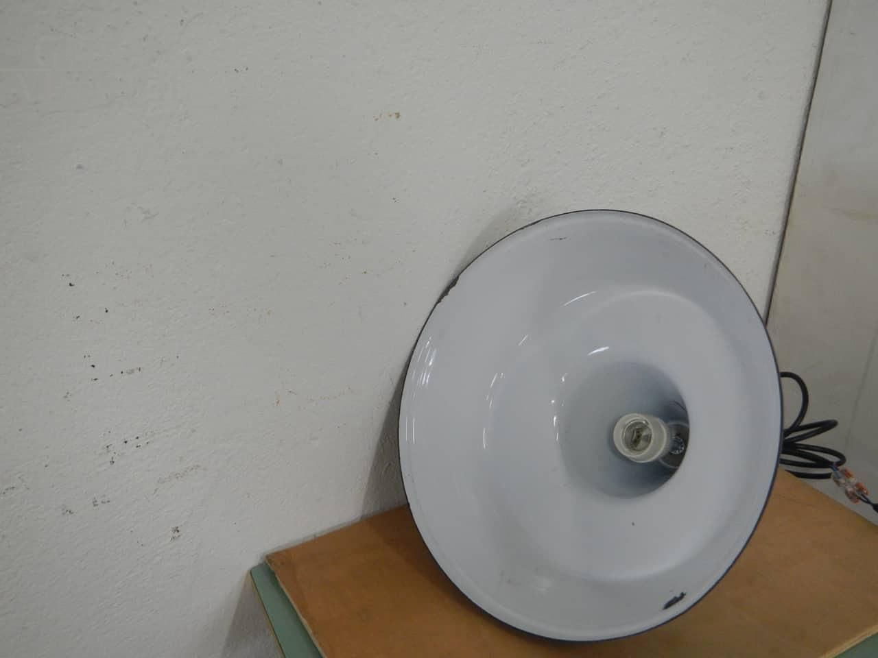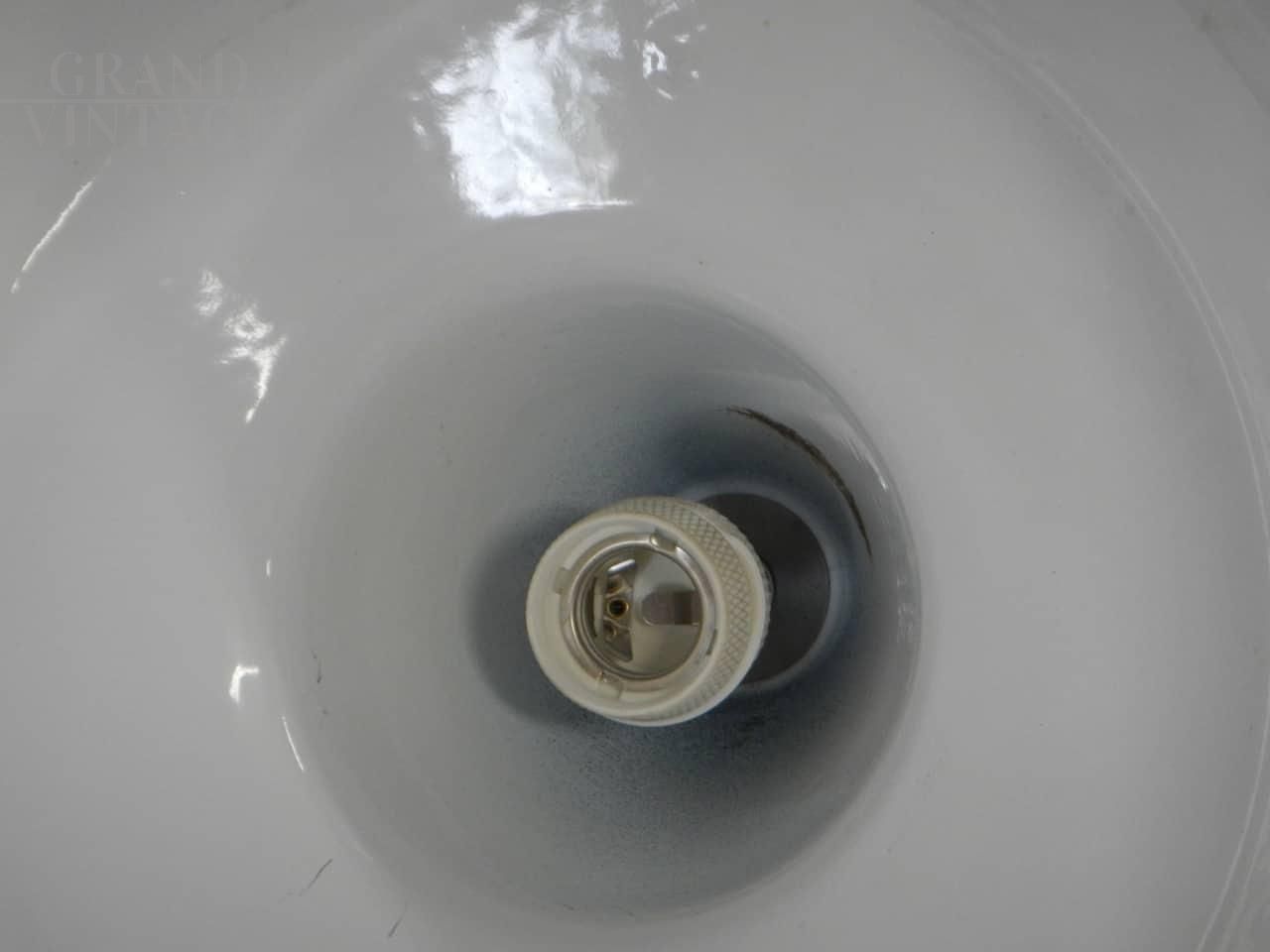 Industrial black metal lamp with white interior. Rewired and running. Lamp socket E27 Sold without bulb. Made in the 1950's