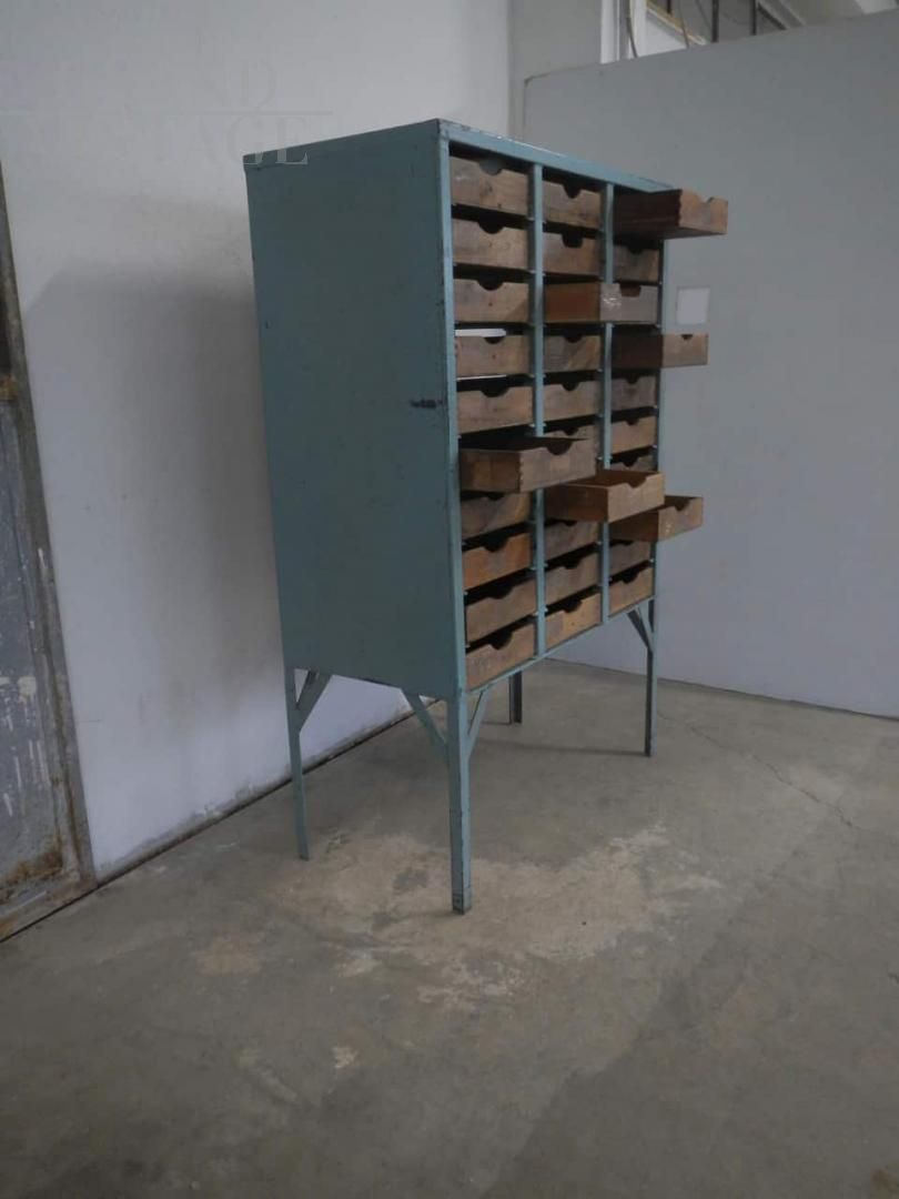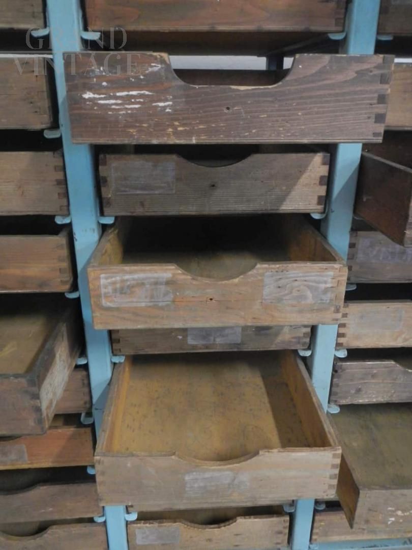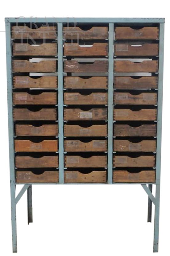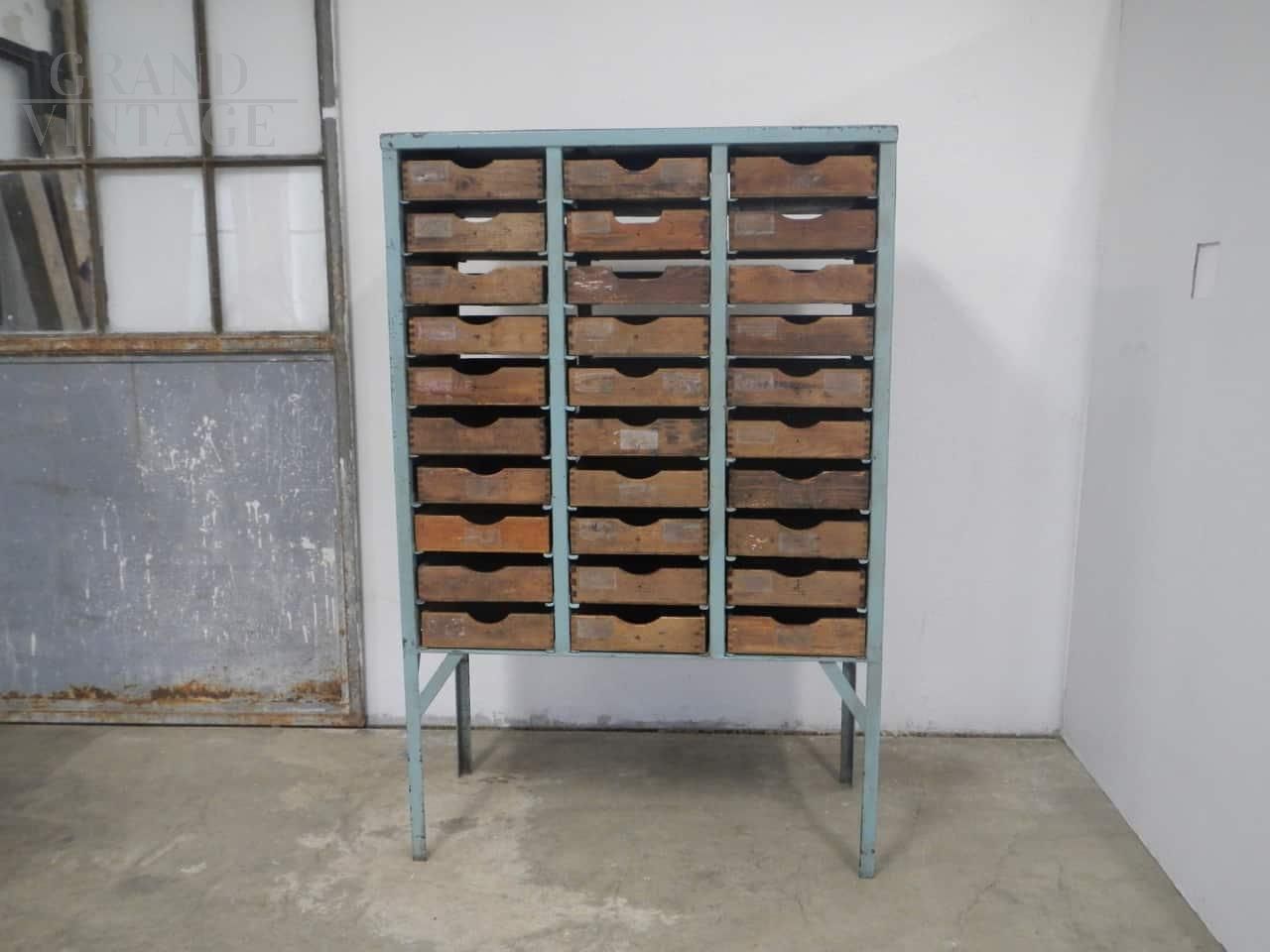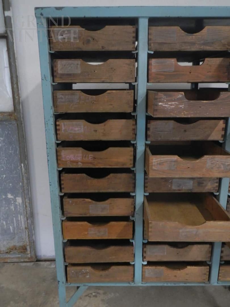 Industrial chest of drawers in iron with wooden drawers, 70s