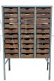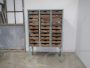 Industrial drawer unit from the 70s with iron structure and wooden drawers, the high legs are particular. Cleaned and waxed.