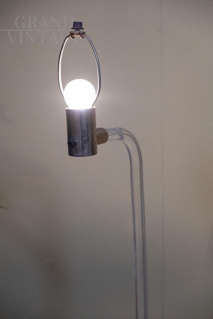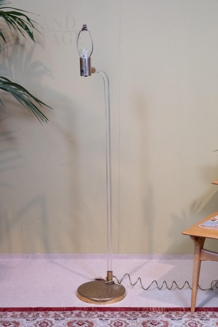 Technical look and hi-tech transparencies. This industrial lamp stands out for its transparent plastic stem, which gives visual lightness and a contemporary charm. Perfect for futuristic settings, urban photo sets, conceptual installations or scenography with a metropolitan and experimental mood.
