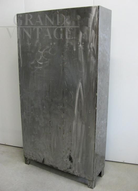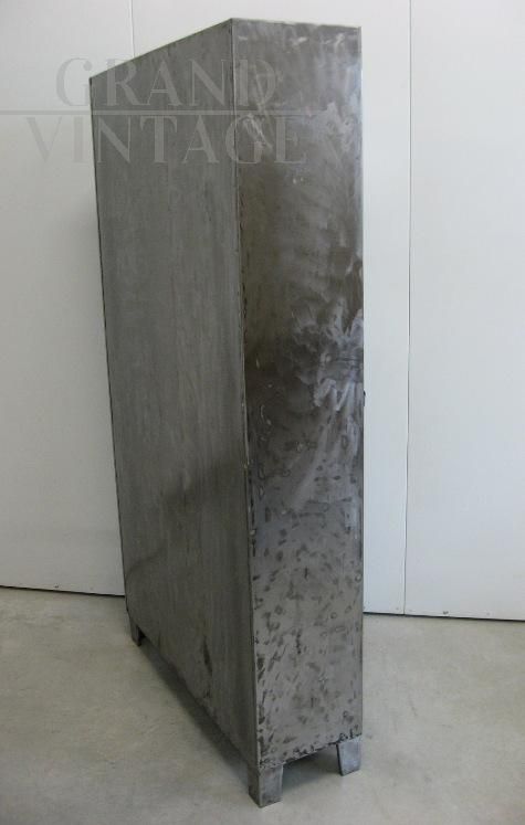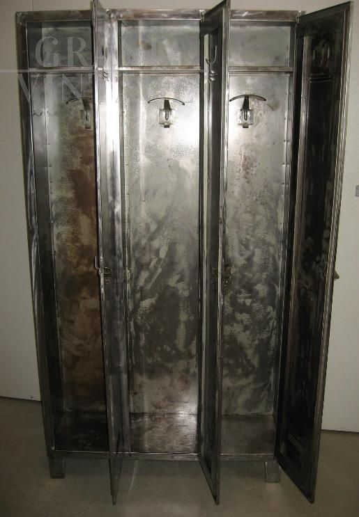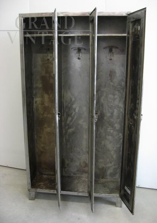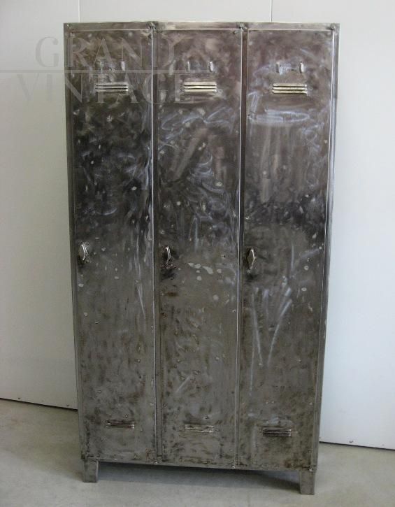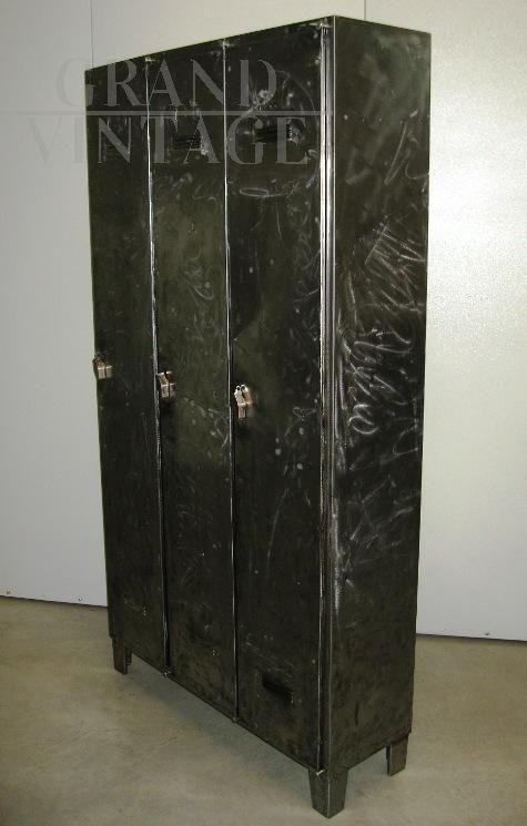 Industrial locker with three iron doors, totally cleaned. Inside it has hangers and an upper shelf.