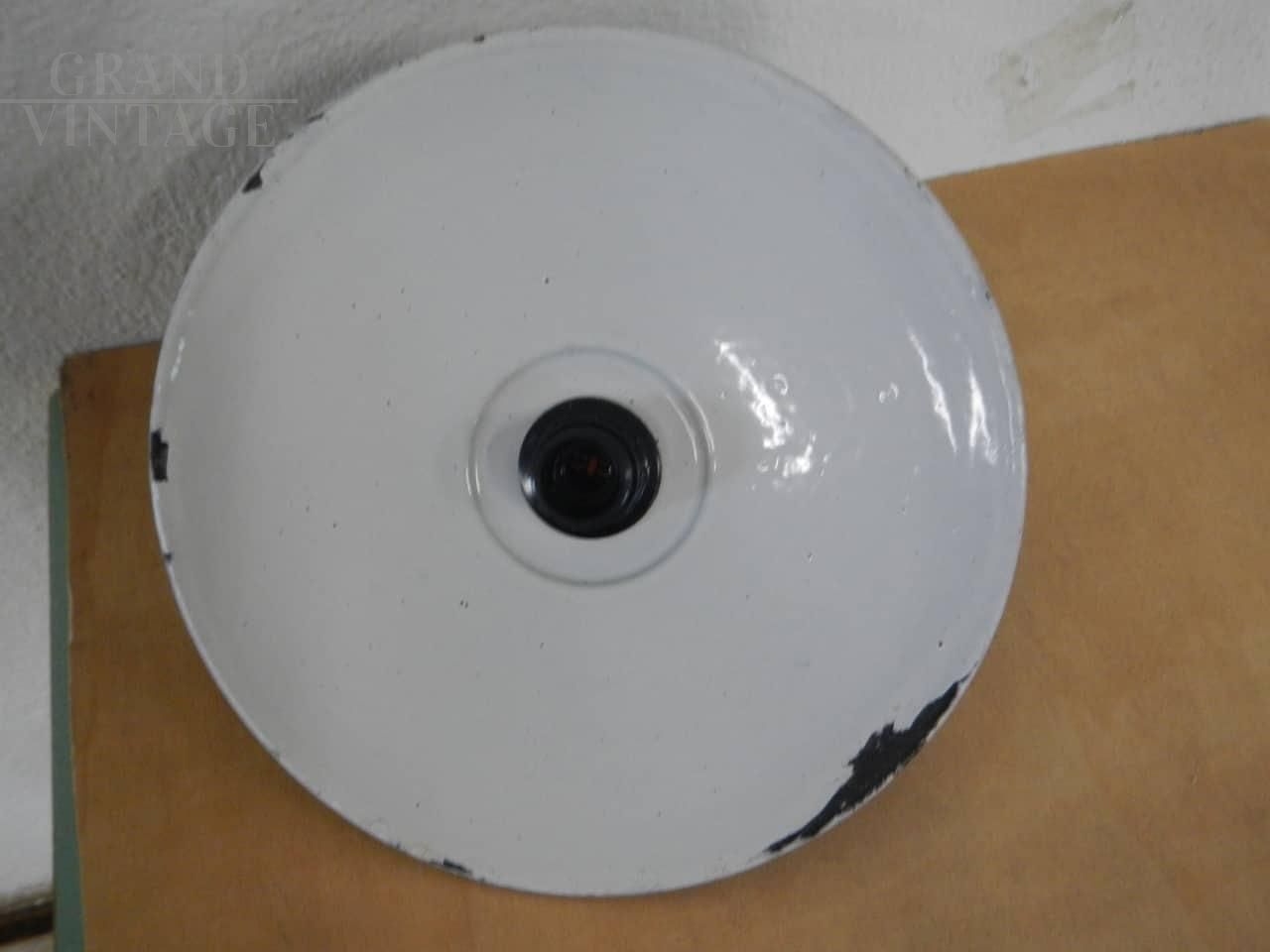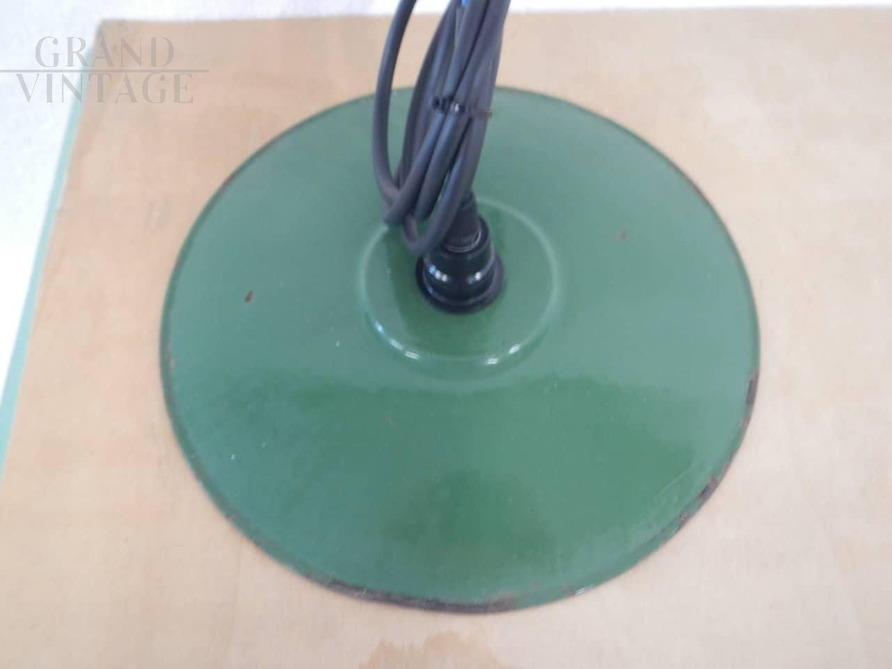 Industrial saucer suspension lamp in green metal, 1940s