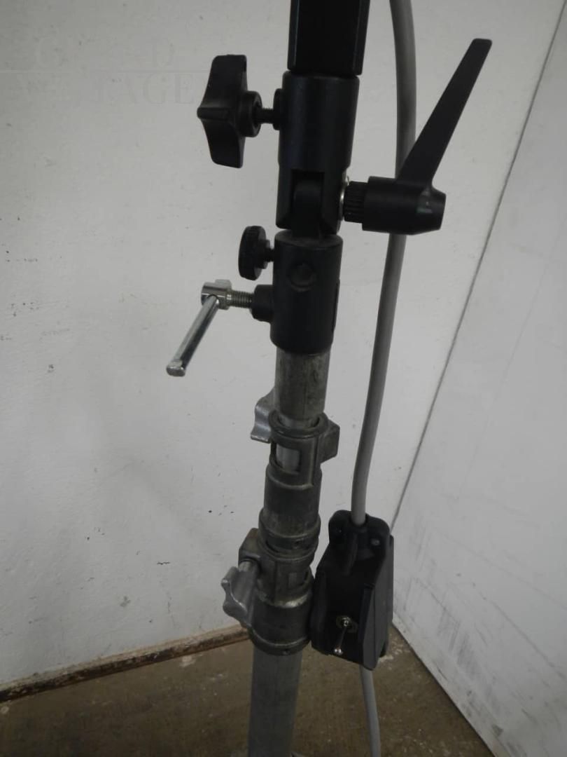 Industrial stage spotlight with metal stand adjustable in height up to 250 cm and with tilting lamp, produced by IANIRO in the 70s, the bulb is Led!