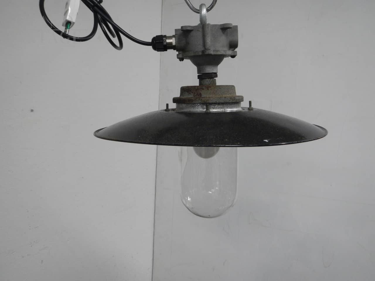 Industrial style outdoor lamp with structure in black and white lacquered metal and glass, which can be dismantled to change the bulb which is included in the sale price. Available in 2 pieces, the indicated price is for a single piece.
