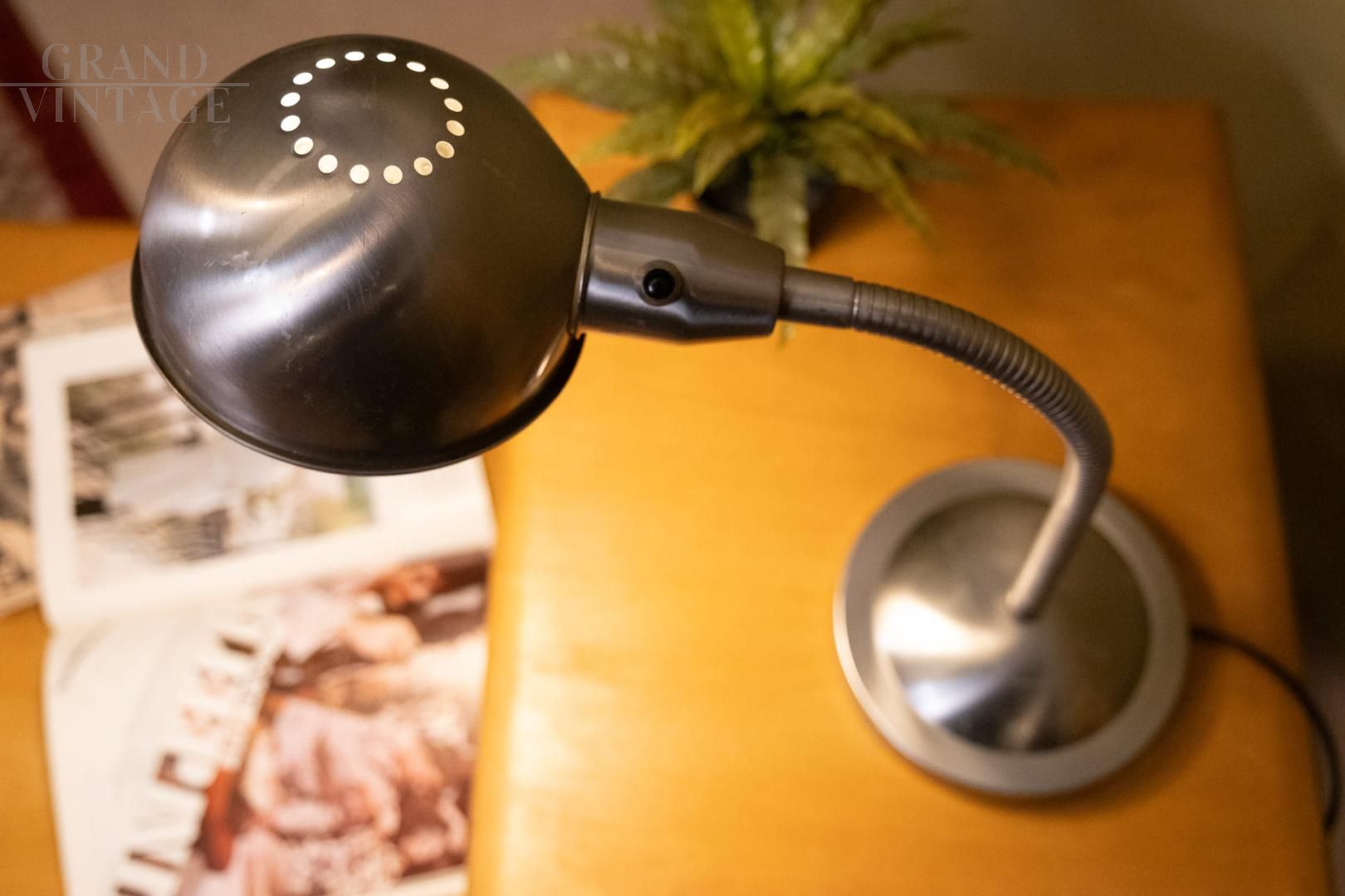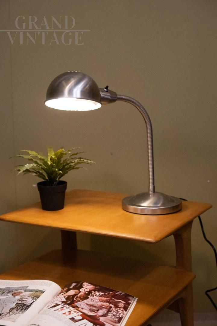 Formal cleanliness and a technical soul define this industrial table lamp with a satin finish. Its sober but decisive design makes it perfect for rigorous style shootings, sets inspired by twentieth-century work spaces or functional settings with a minimal and professional taste.