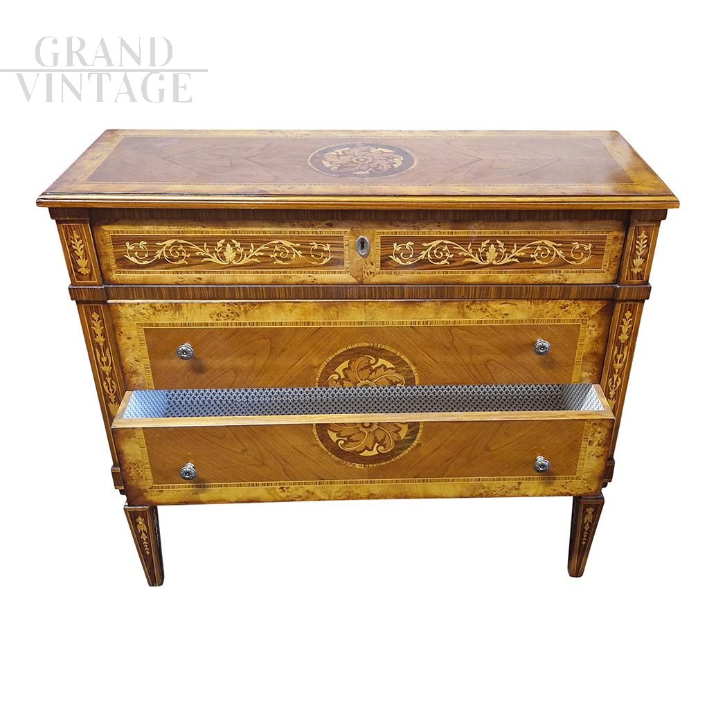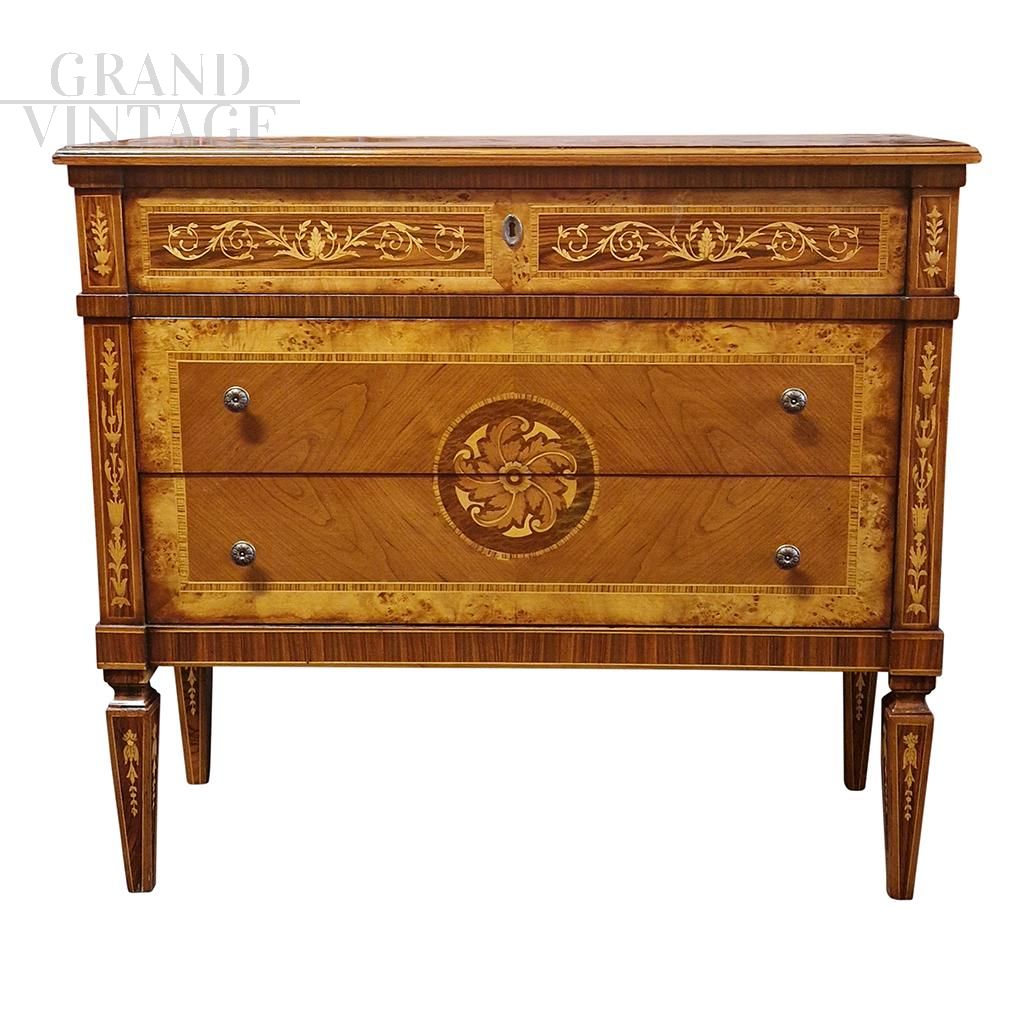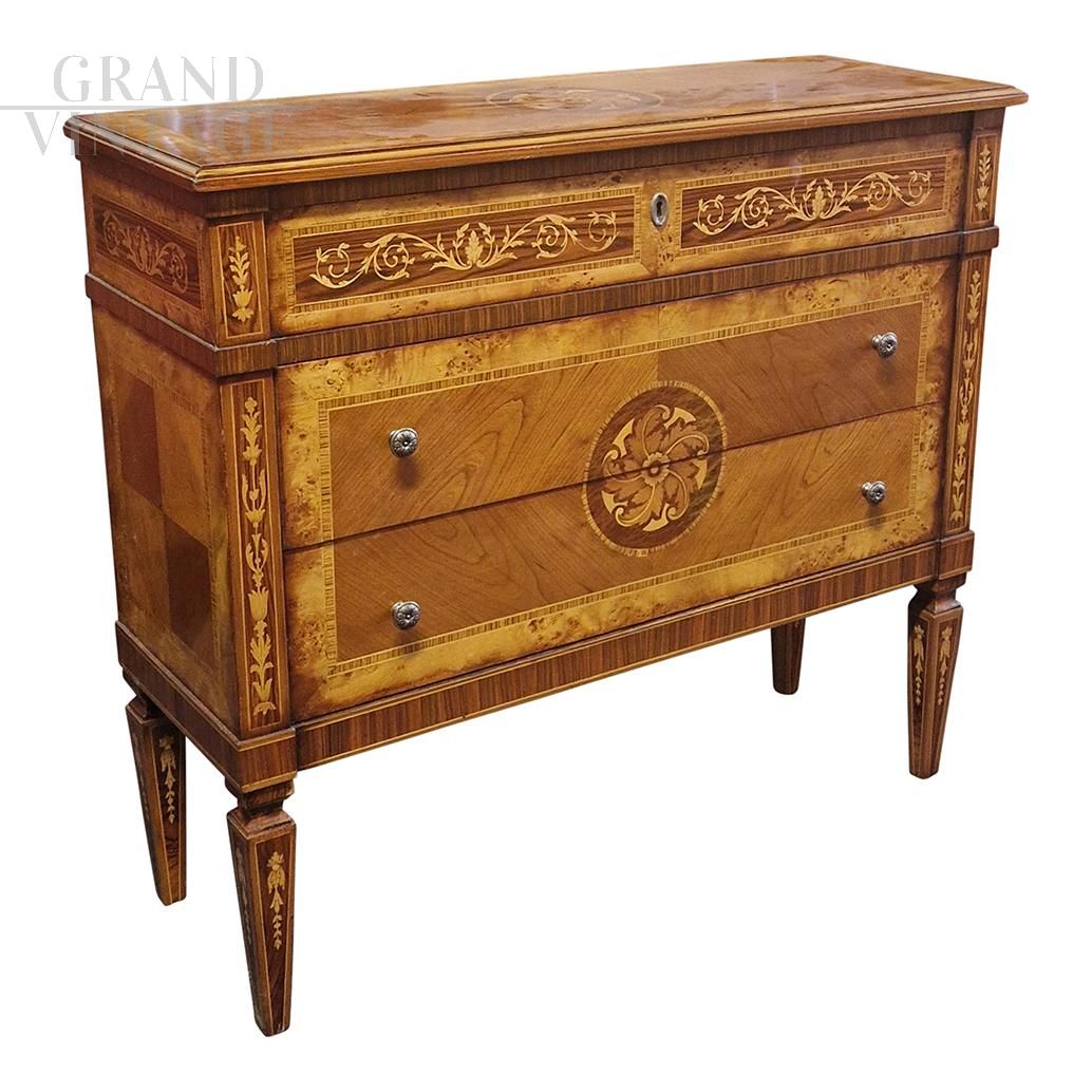 Inlaid chest of drawers in antique Louis XVI Lombard style