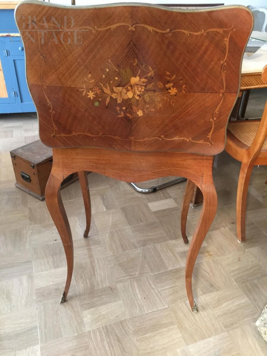 Inlaid coffee table veneered in walnut, with finely inlaid top. French manufacture, end of the 19th century.