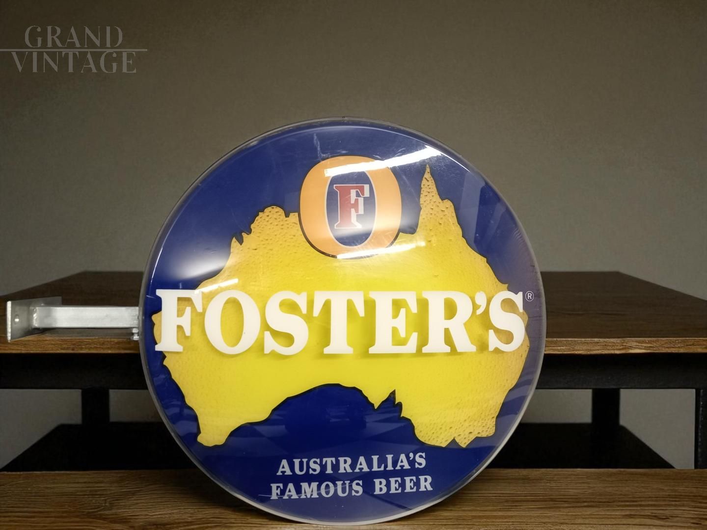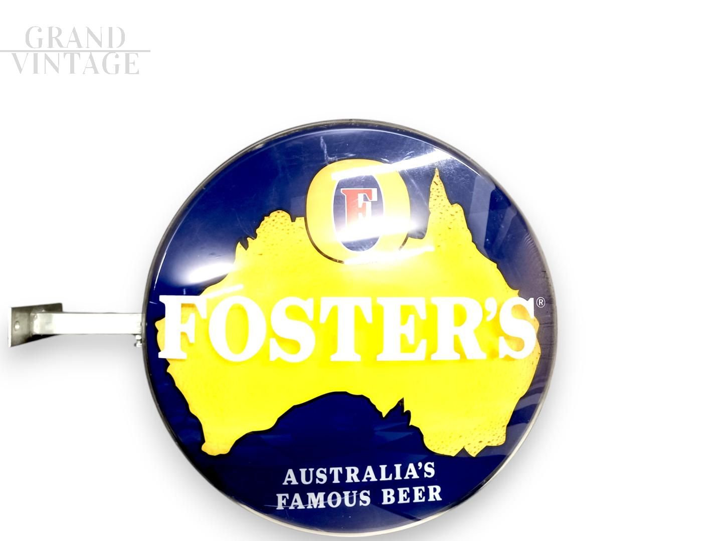 Beautiful vintage double-sided Foster's beer light sign, complete and working, with no defects or breaks, complete with bracket for hanging it on the wall.