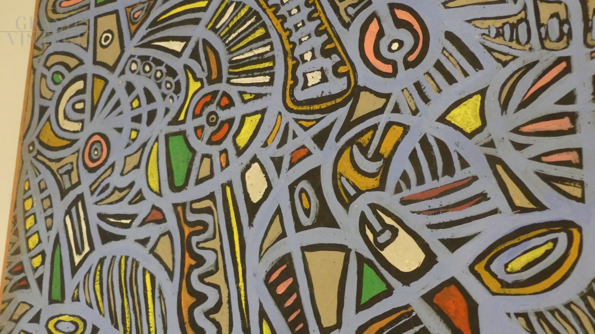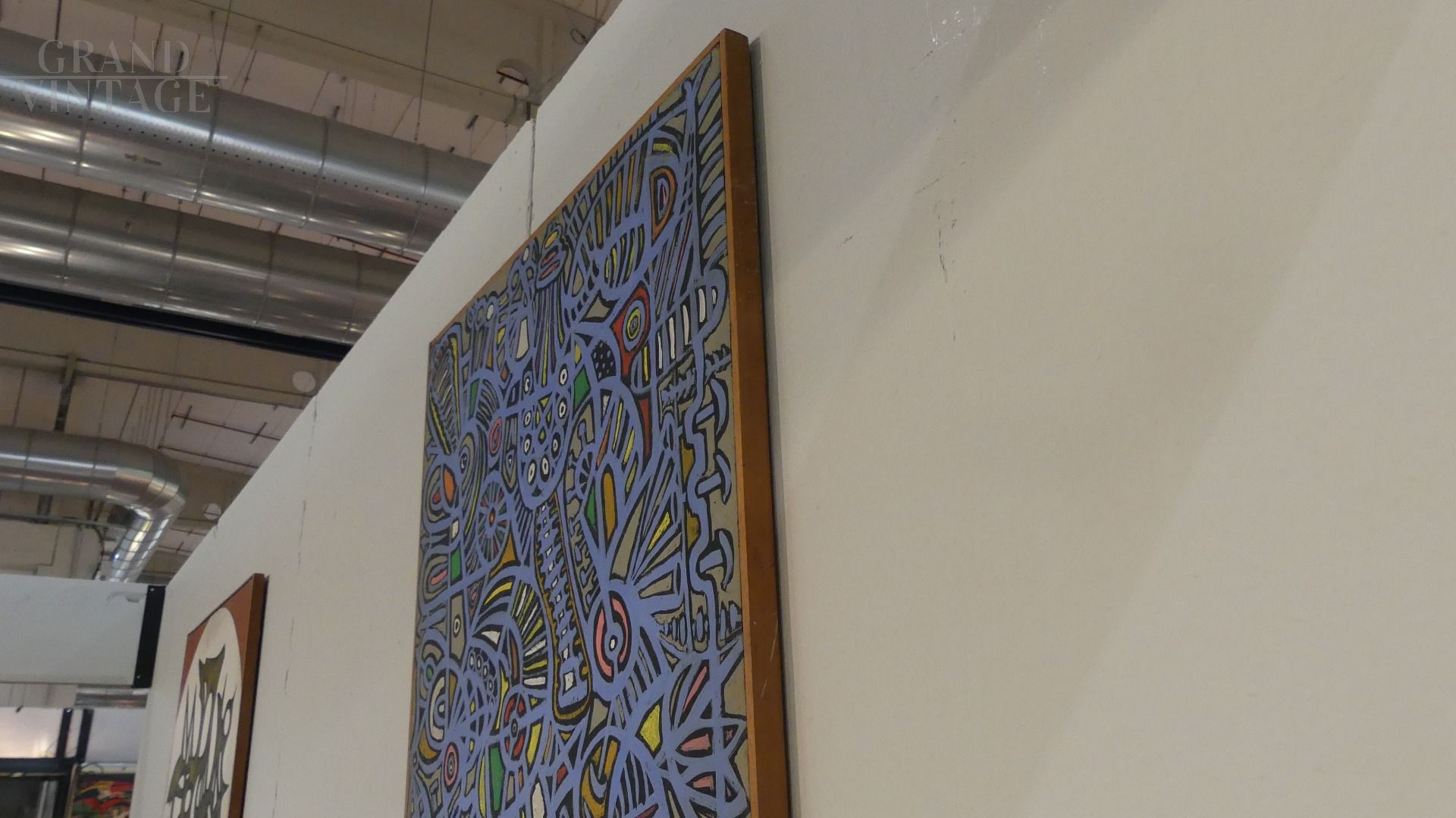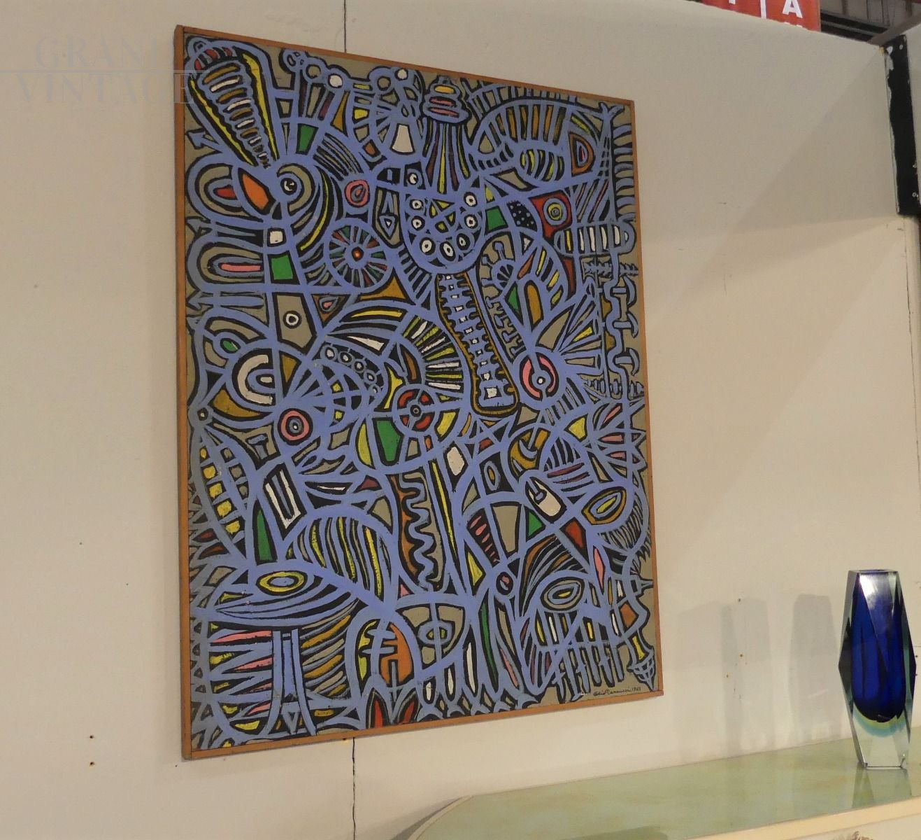 Painting by Elio Marcucci entitled Intrico, precursor of the Pop-Art style, acrylic on wood, signed and dated 1968.