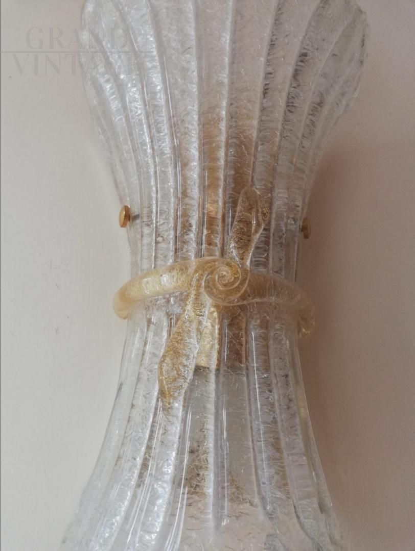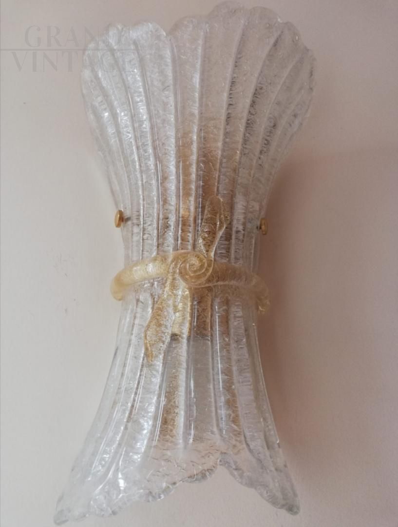 Single Murano wall lamp by Italamp, in good condition. The base is in gold-plated metal. Vintage working lamp from the 1980s. It has a bulb with E14 socket. In perfect condition. Measurements: Height 36 cm, Width 15 cm.