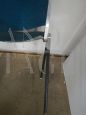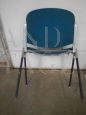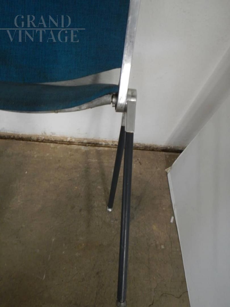 Office chair from the 60s in blue fabric, whose structure is attributable to the DSC106 model by Castelli, with some modifications. It shows natural signs of wear.