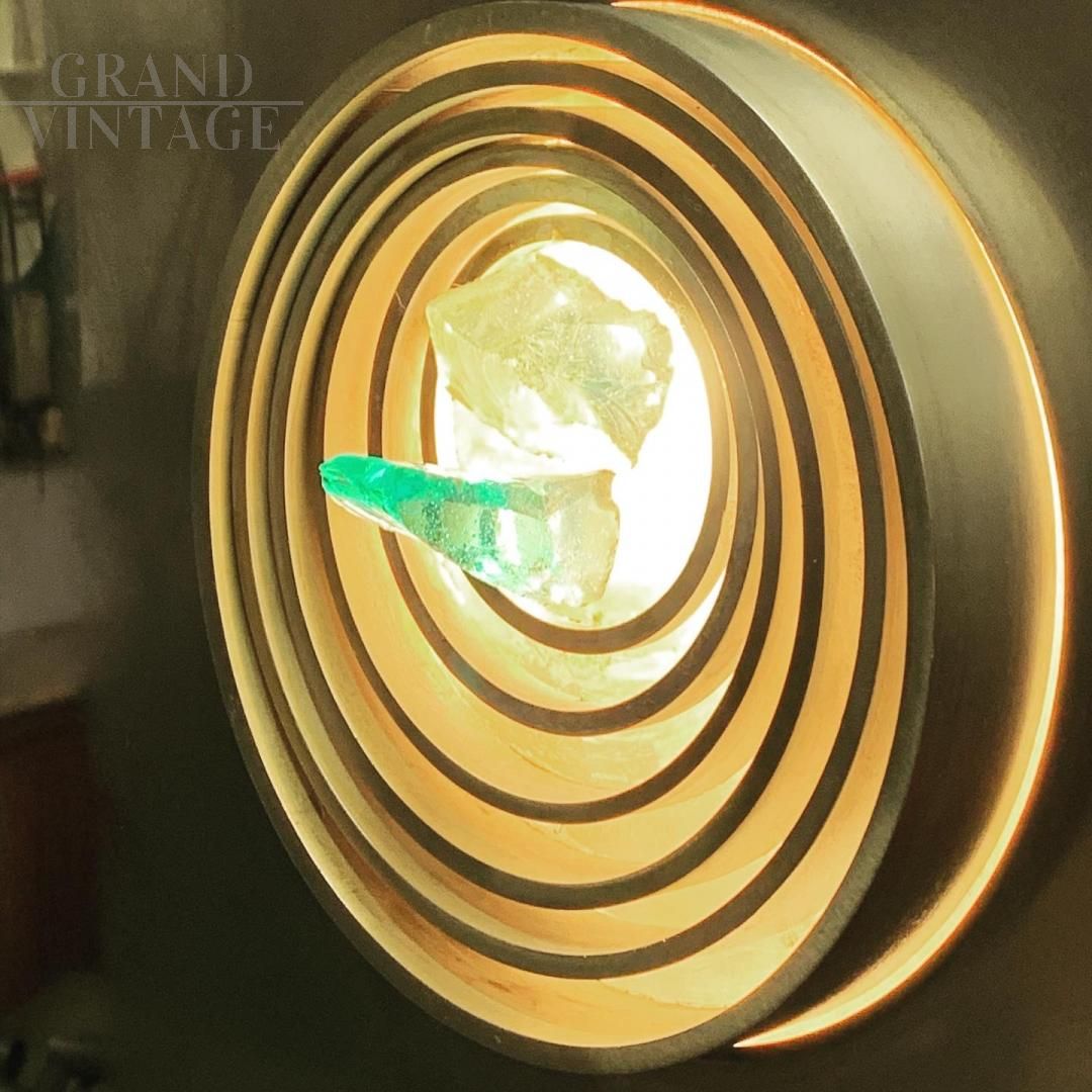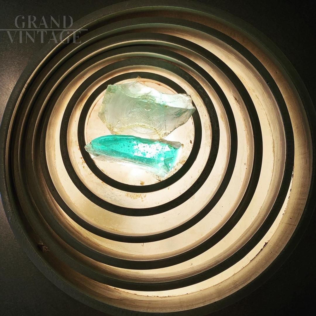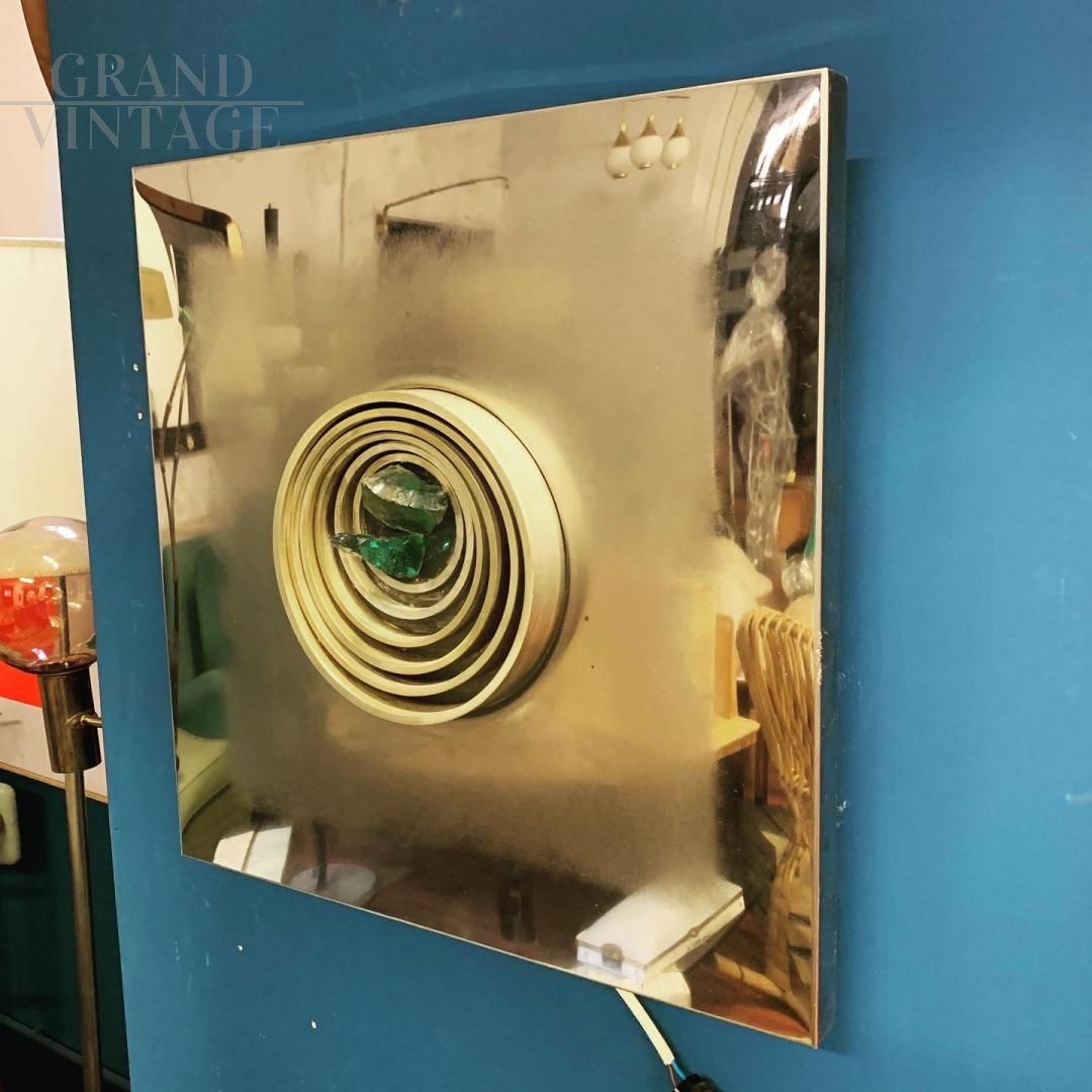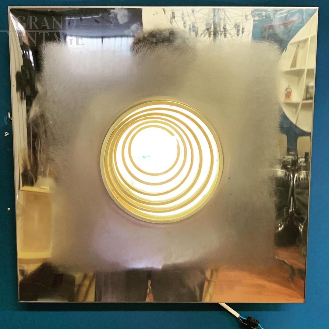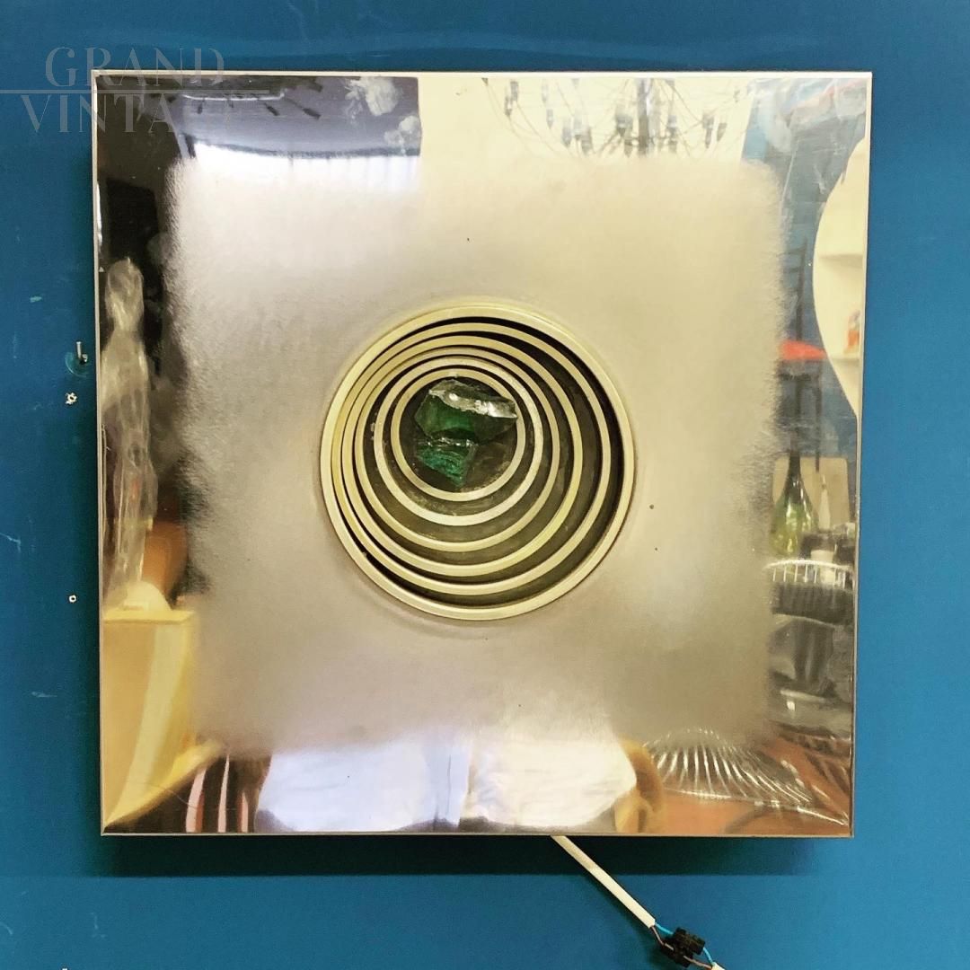 Vintage light panel designed by Angelo Brotto for Esperia, made of steel and stainless steel, with Murano glass fragments.