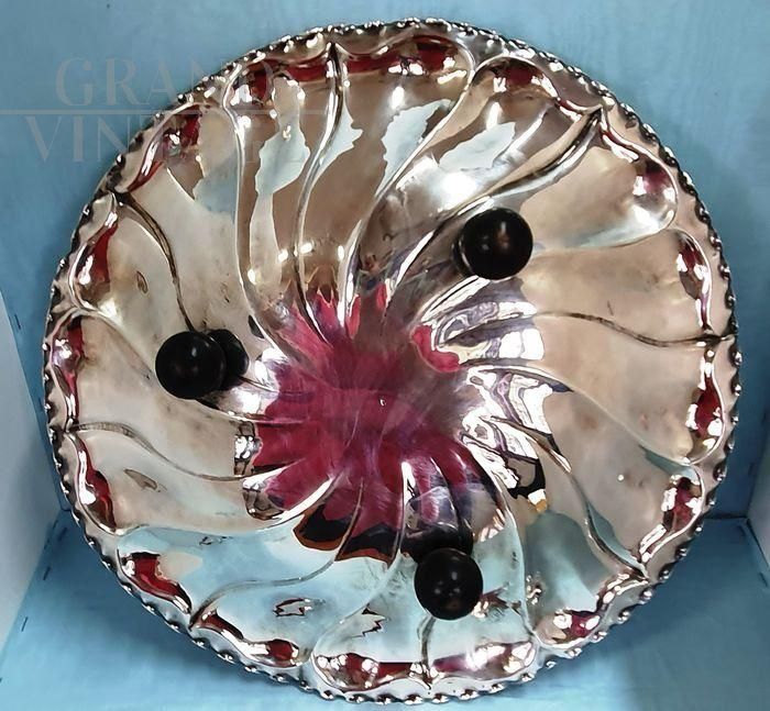 Italian silver centerpiece, gr. 530, with screw-removable wooden feet, in good condition, it shows some signs due to age and use.