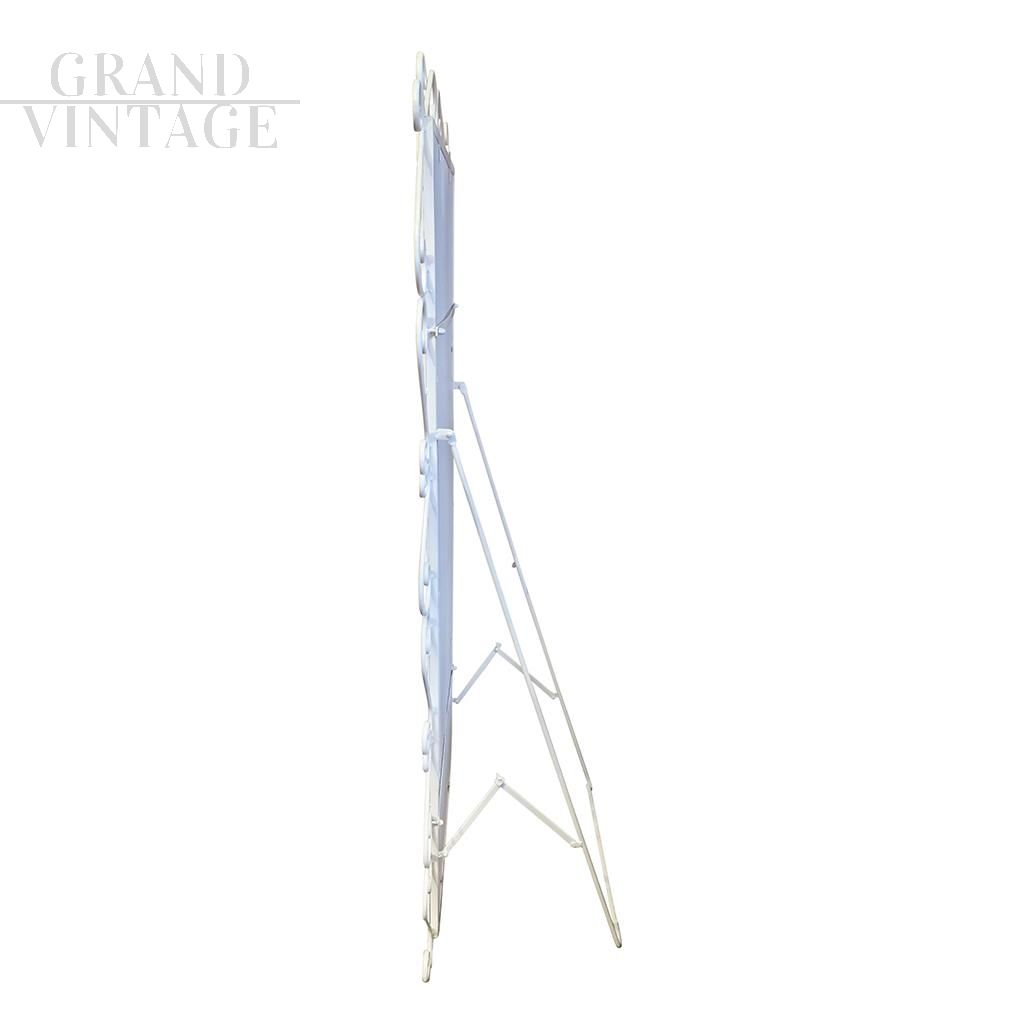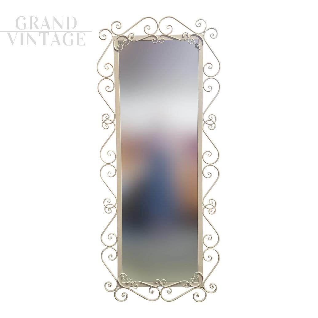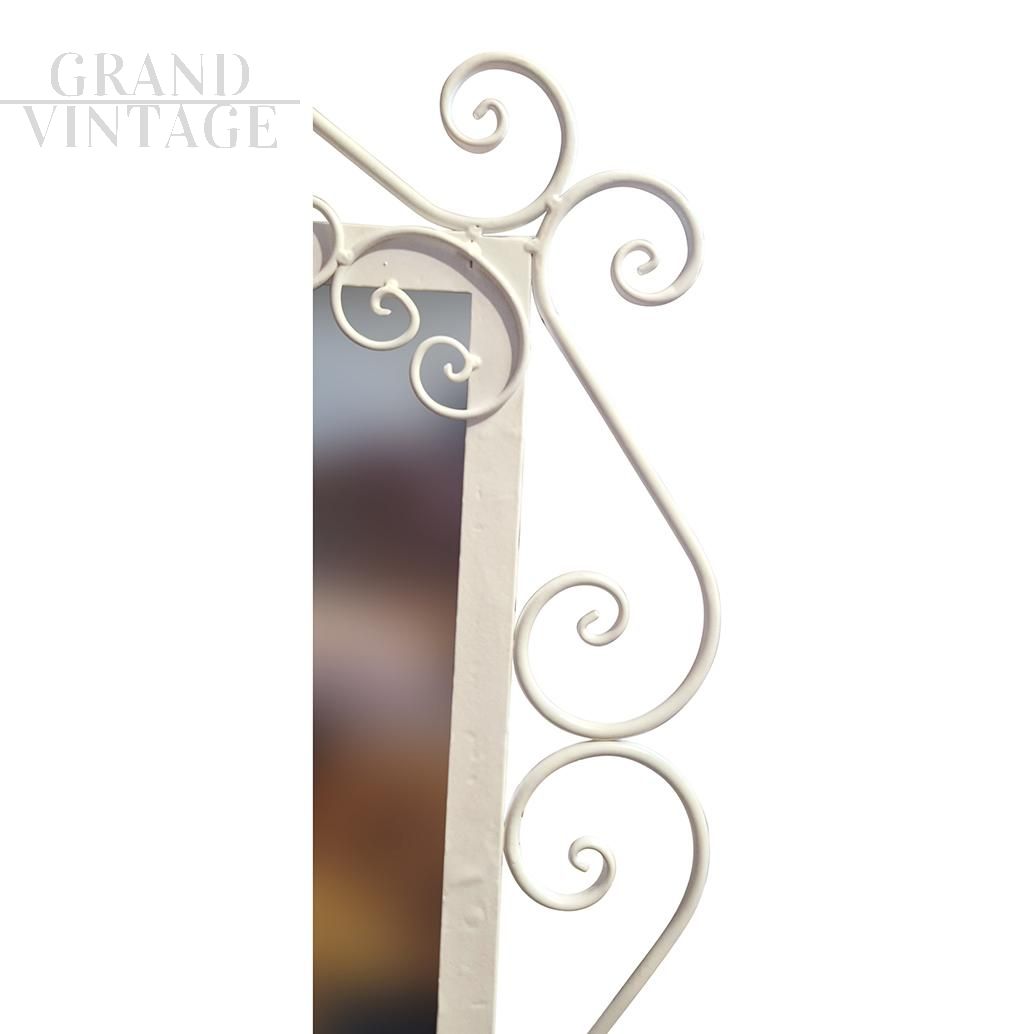 Rectangular floor mirror with metal frame decorated with curls and painted in ivory, complete with support to adjust the tilt of the mirror.