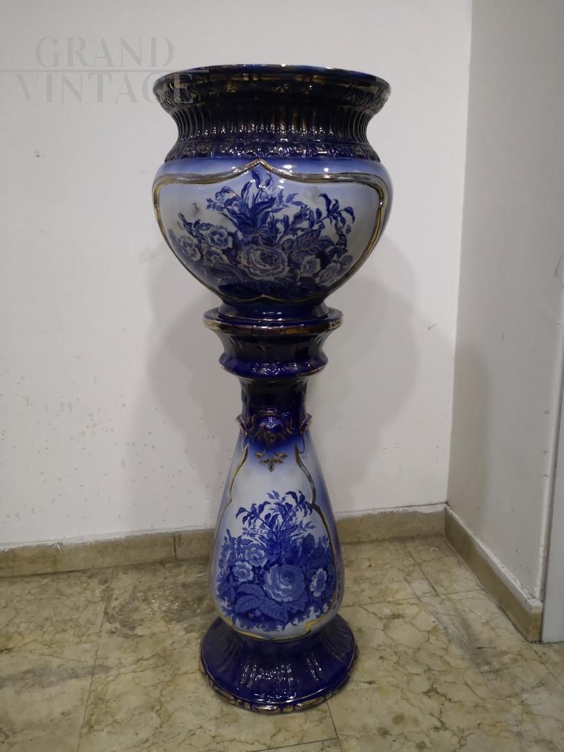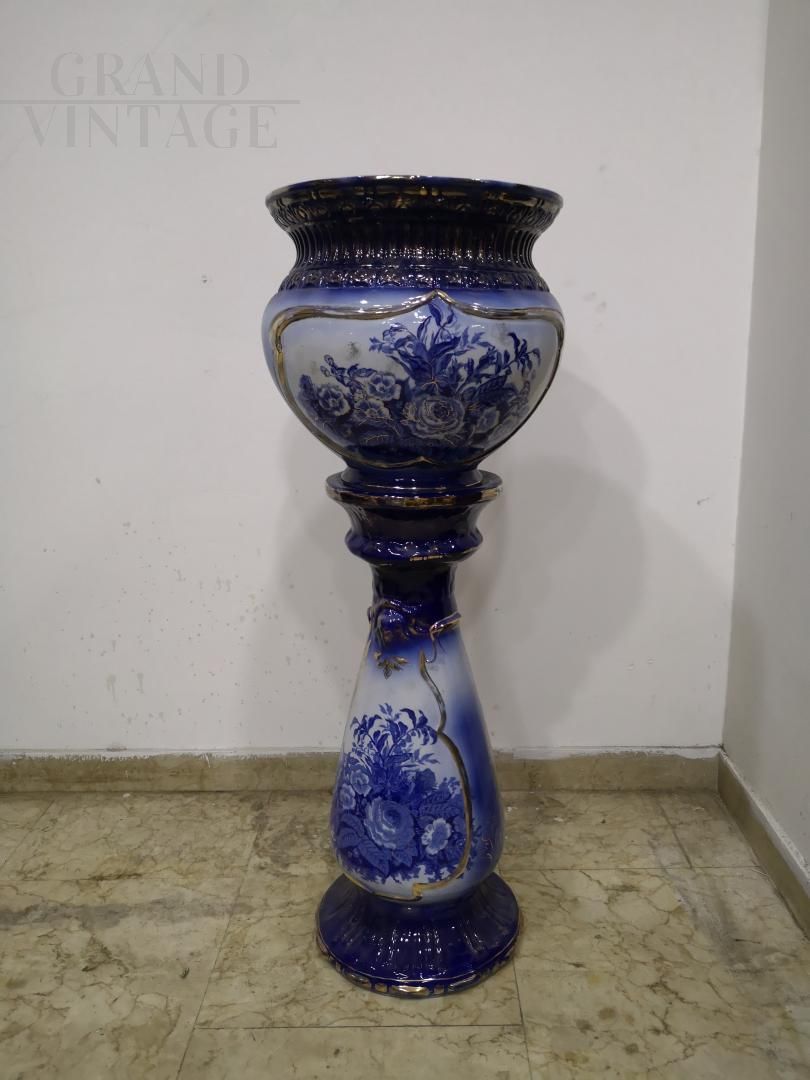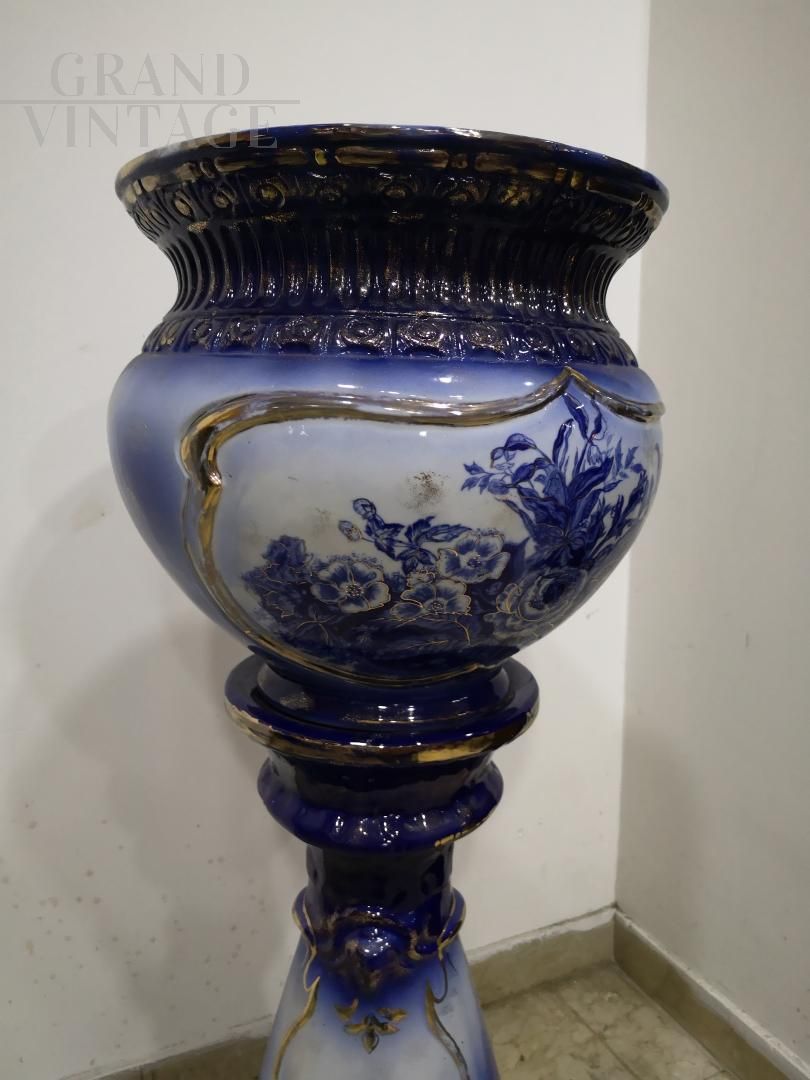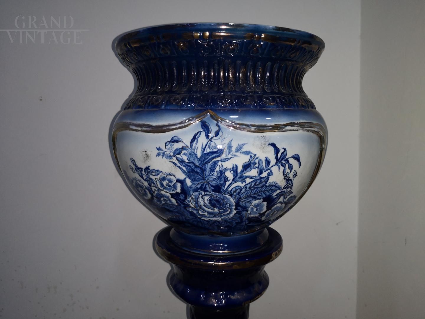 Jardiniere U&C Sarreguemines ceramic vase with pedestal, late 19th century