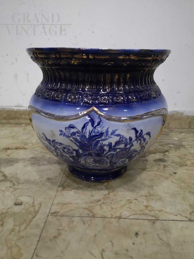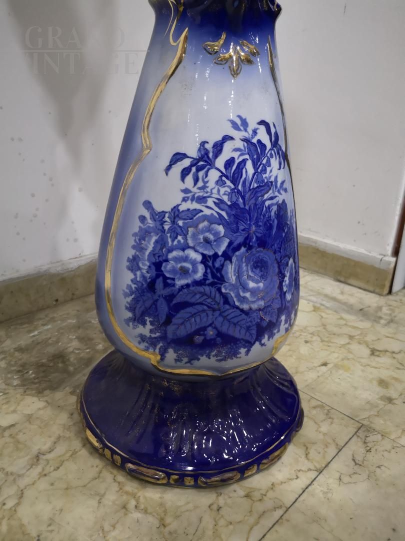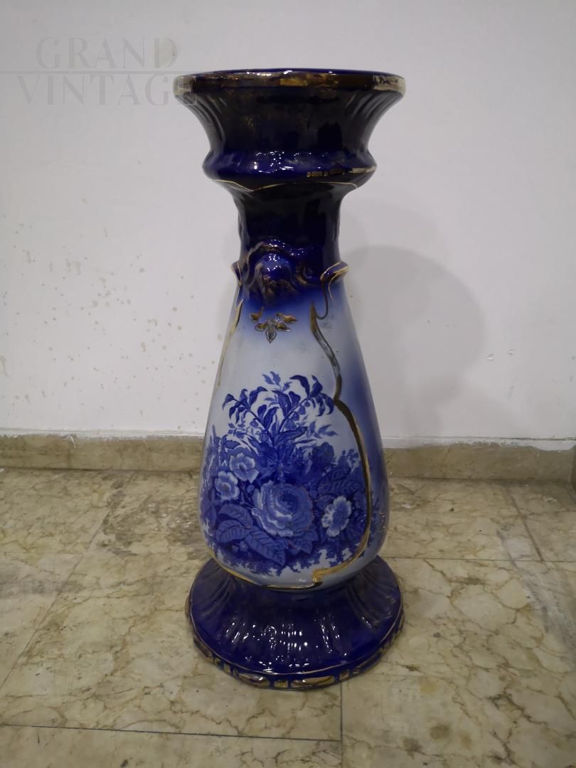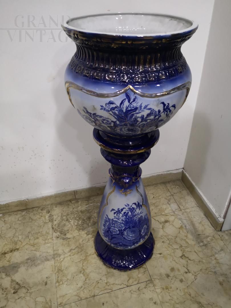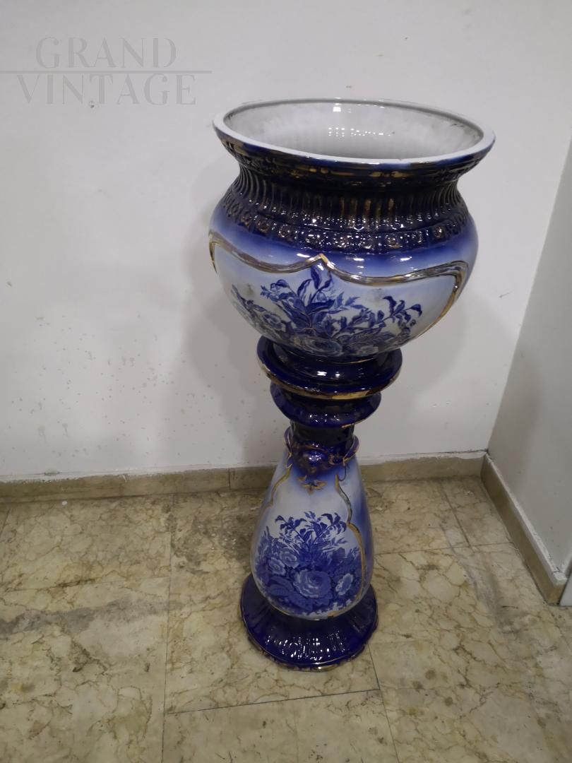 Jardiniere U&C Sarreguemines ceramic vase with pedestal, late 19th century