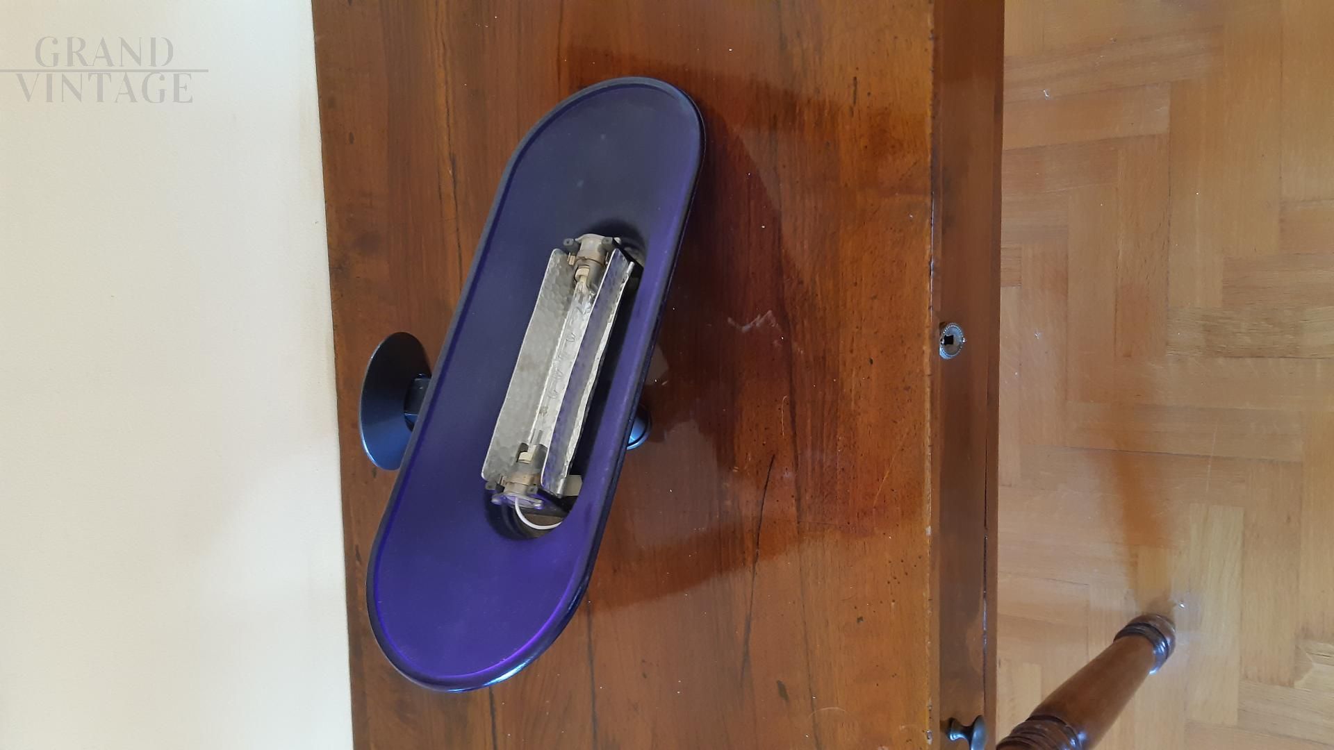 Jill wall light designed by Perry King, Santiago Miranda and Gianluigi Arnaldi for Arteluce in the early 1970s in blue glass. It is one of the icons of home lighting. Its classic shape and elegant lines have made it a point of reference for interior design lovers. Ideal for those who want to add a touch of style to their spaces, thanks to this functional and classy lamp at the same time. The vintage piece is in almost original condition, it may show minimal traces of use. Bulb included. Vintage lamp purchased in 1985.