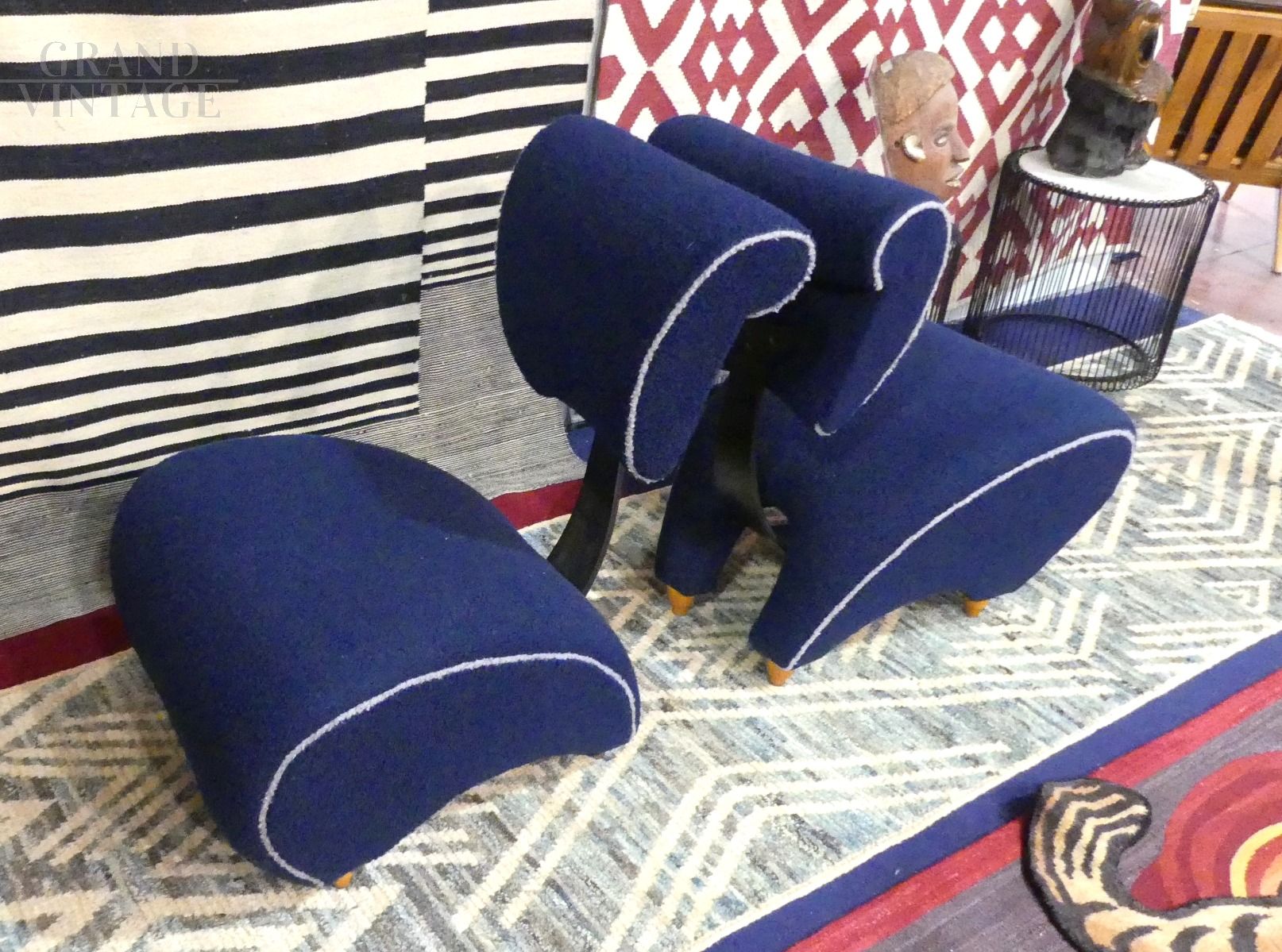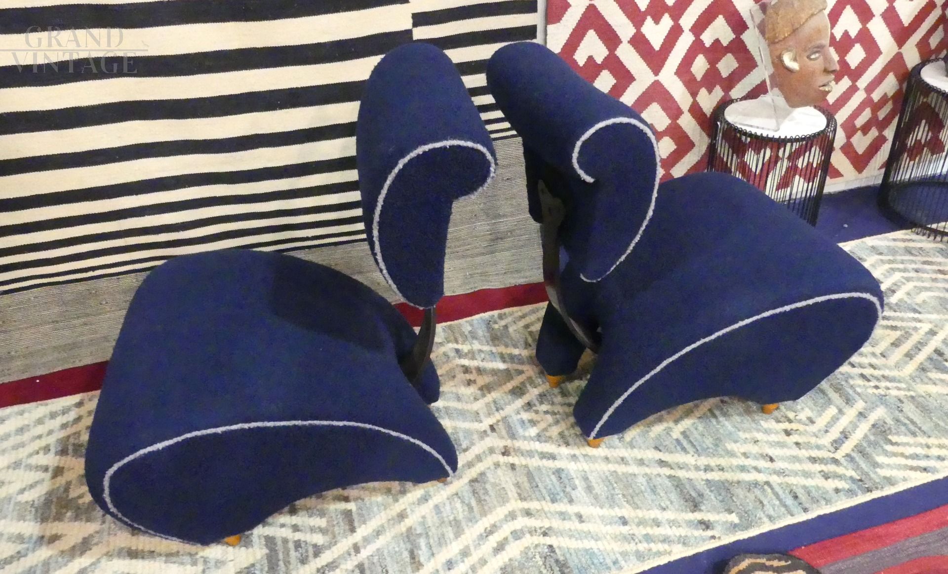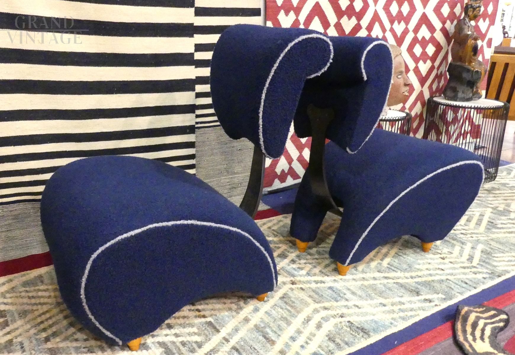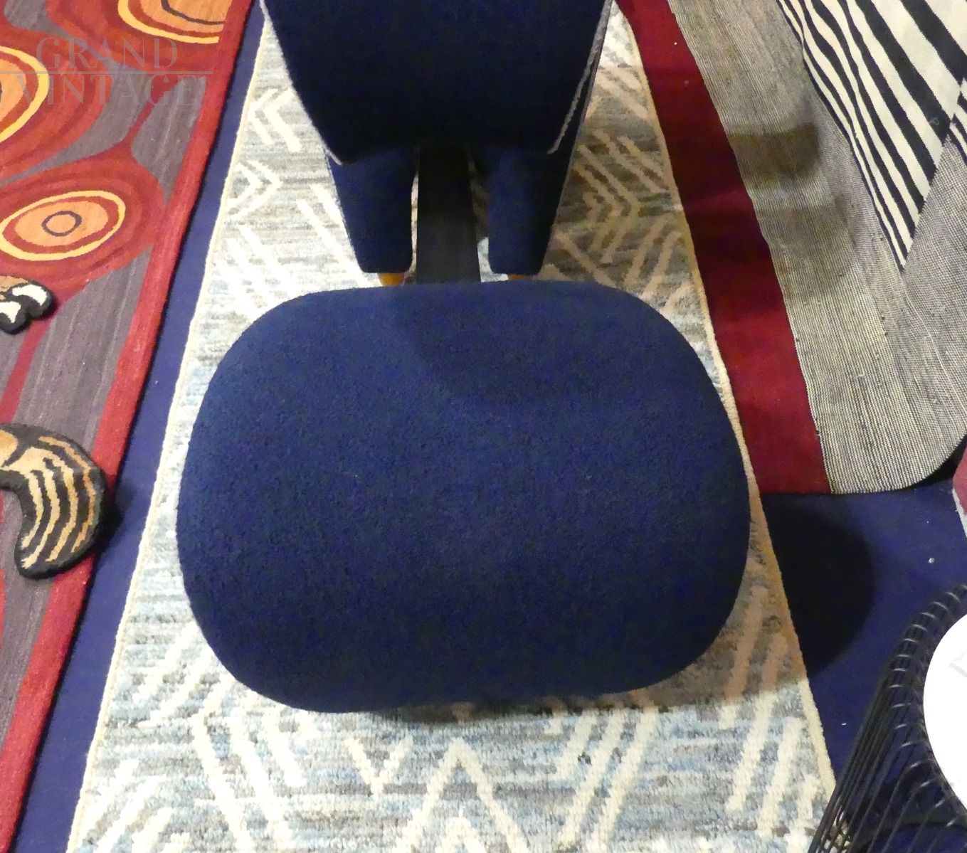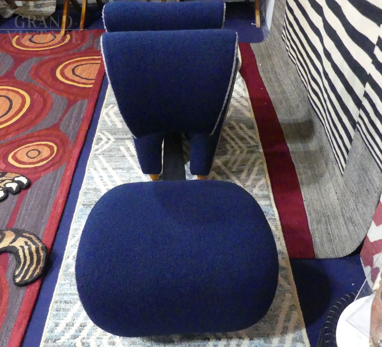 Jordan Mozer American armchairs in blue bouclé wool, 1970s