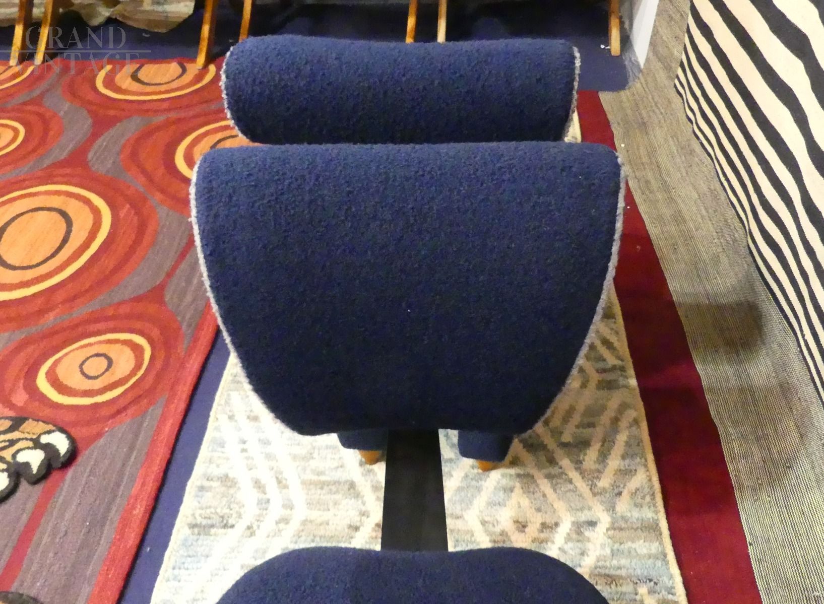 Poltroncine americane Jordan Mozer in lana bouclé blu anni '70